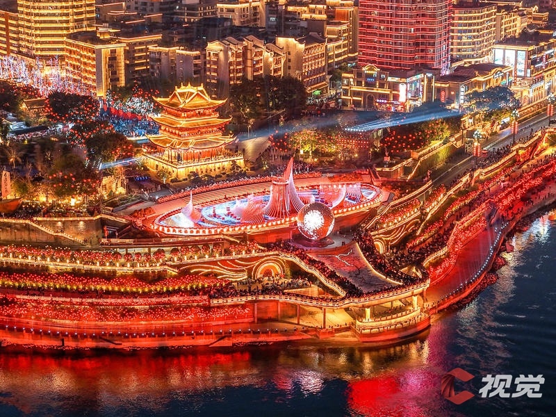 2月20日,在总台春晚宜宾分会场合江门地标广场,灯火辉煌、流光溢彩,尽显 “万里长江第一城” 的独特魅力。C视觉签约摄影师 张元戎 摄