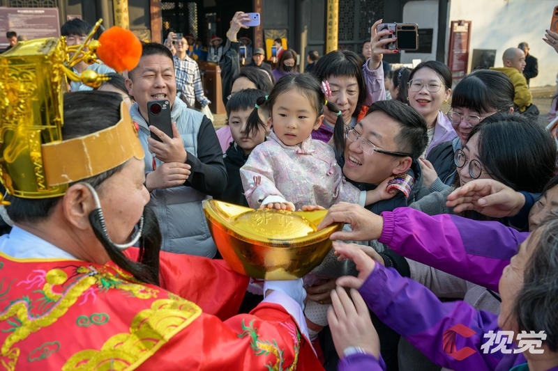 2026年2月21日,南充市阆中古城举办了“迎财神”、“阆苑小春倌”等习俗互动活动,游客们争相手抓金元宝,十分喜气热闹。C视觉签约摄影师 姚文顺 摄