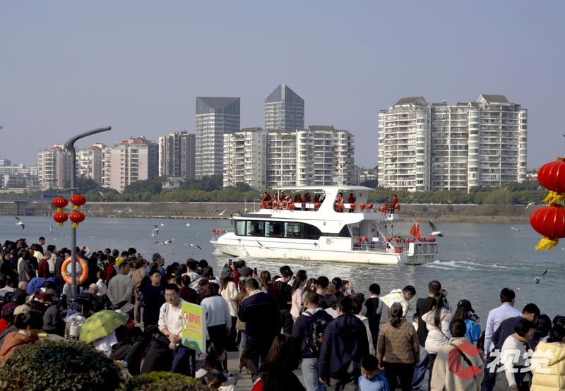 2月20日,在绵阳市城区三江湖国家湿地公园,市民陪同家人前来晒太阳、坐游船、与红嘴鸥互动,乐享春节假期美好时光。C视觉签约摄影师 张祖强 摄