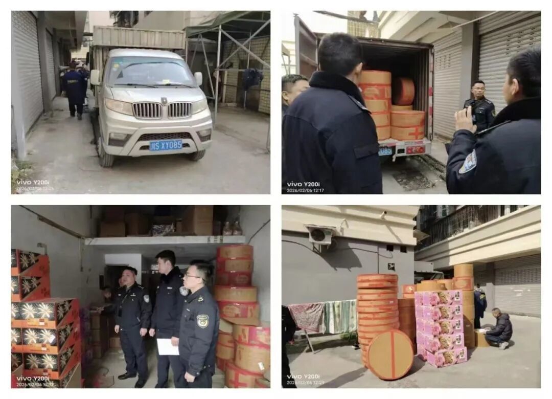2026年2月6日,根据群众举报线索,达州市大竹县应急管理局联合县公安局在大竹县白塔街道鸿源星小区分别查获1起非法运输、储存烟花爆竹行为。现场查获停放在该小区内一辆车牌号为川S·XY085的小型厢式货车装载有烟花10件、爆竹79件;一闲置民房储存有烟花64件、爆竹32件。经查,该运输车辆未取得烟花爆竹道路运输许可证,储存场所未经相关部门审核批准,分别构成非法运输、非法储存烟花爆竹行为。目前,涉案烟花爆竹已被依法查封扣押并转移至专用储存仓库,相关调查工作正在进行当中。