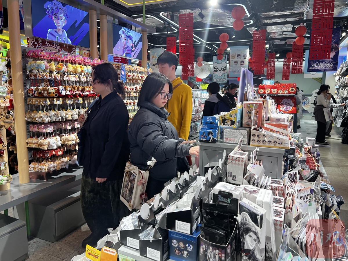 “假期到店顾客的数量呈逐日递增趋势,前两天平均每天在600人左右,大年初三开始顾客数量明显上涨,预计当天可以超过700人。”陈华介绍,销售情况也在同步增长,前三天的销售额平均在3万元/天,时下比较火热的动漫IP周边销量都比较好。