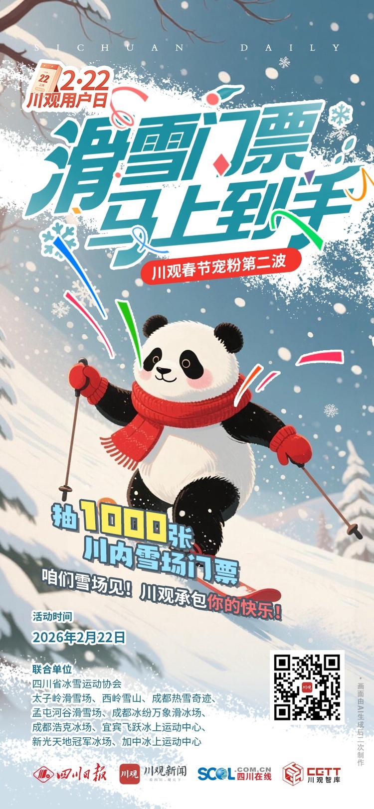 川观又放“雪”啦,千张门票快来领!2月22日,春节假期尾声,恰逢川观用户日,川观新闻携手四川省冰雪运动协会,免费送出四川省多家雪场、冰场滑雪、滑冰门票,邀你错峰出行,来一场冰雪运动之旅。