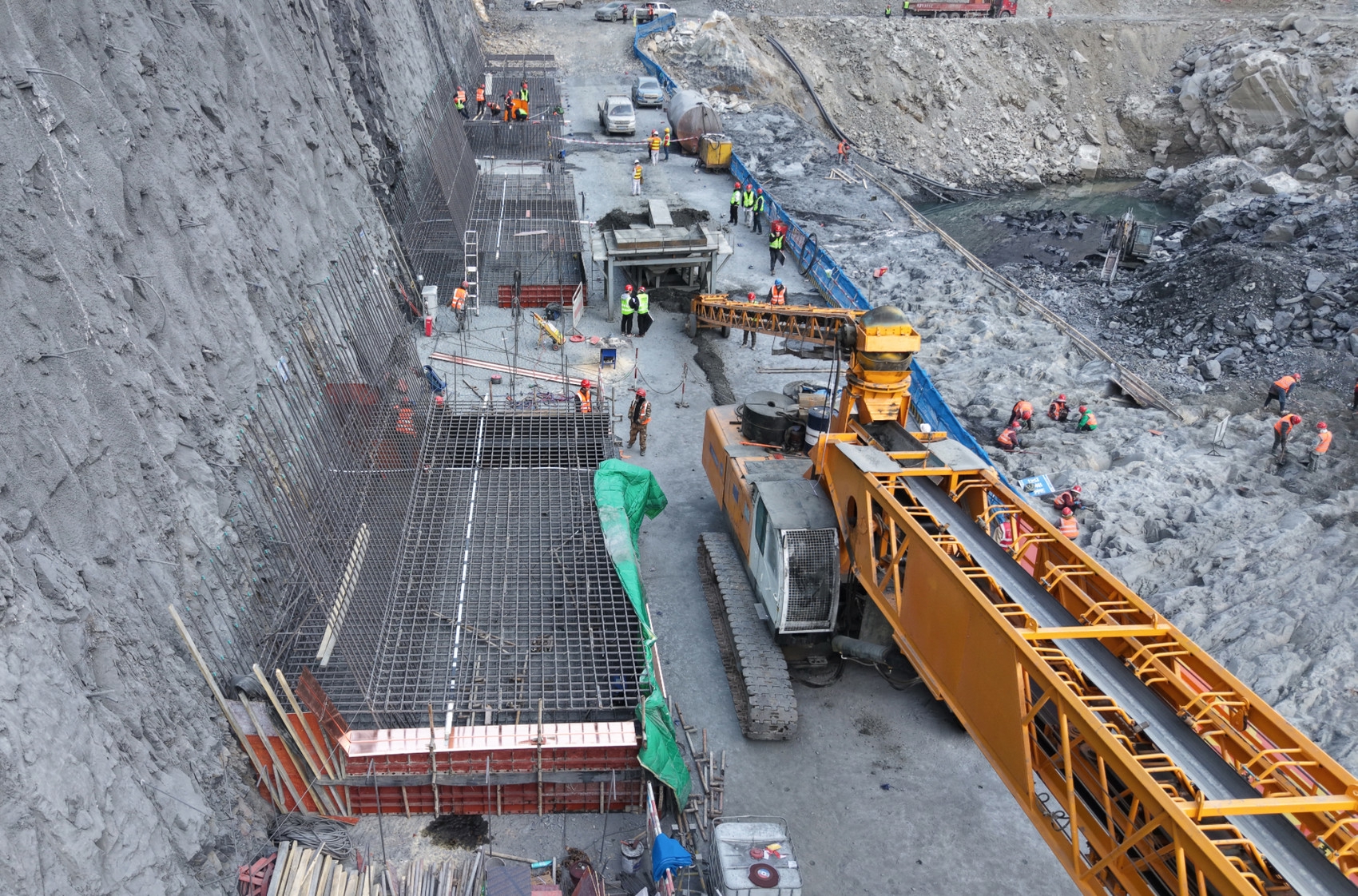为破解这一难题,建设团队为混凝土打造了一个恒温恒湿的“成长环境”:优化混凝土配合比,从内部提升抗冻耐久性能,如同为其穿上“保暖内衣”,并构建全流程温控防线,创新采用蒸汽养护法等。春节期间,600余名建设者坚守现场,如期启动大坝首仓混凝土浇筑,标志着电站正式迈入主体工程施工新阶段。