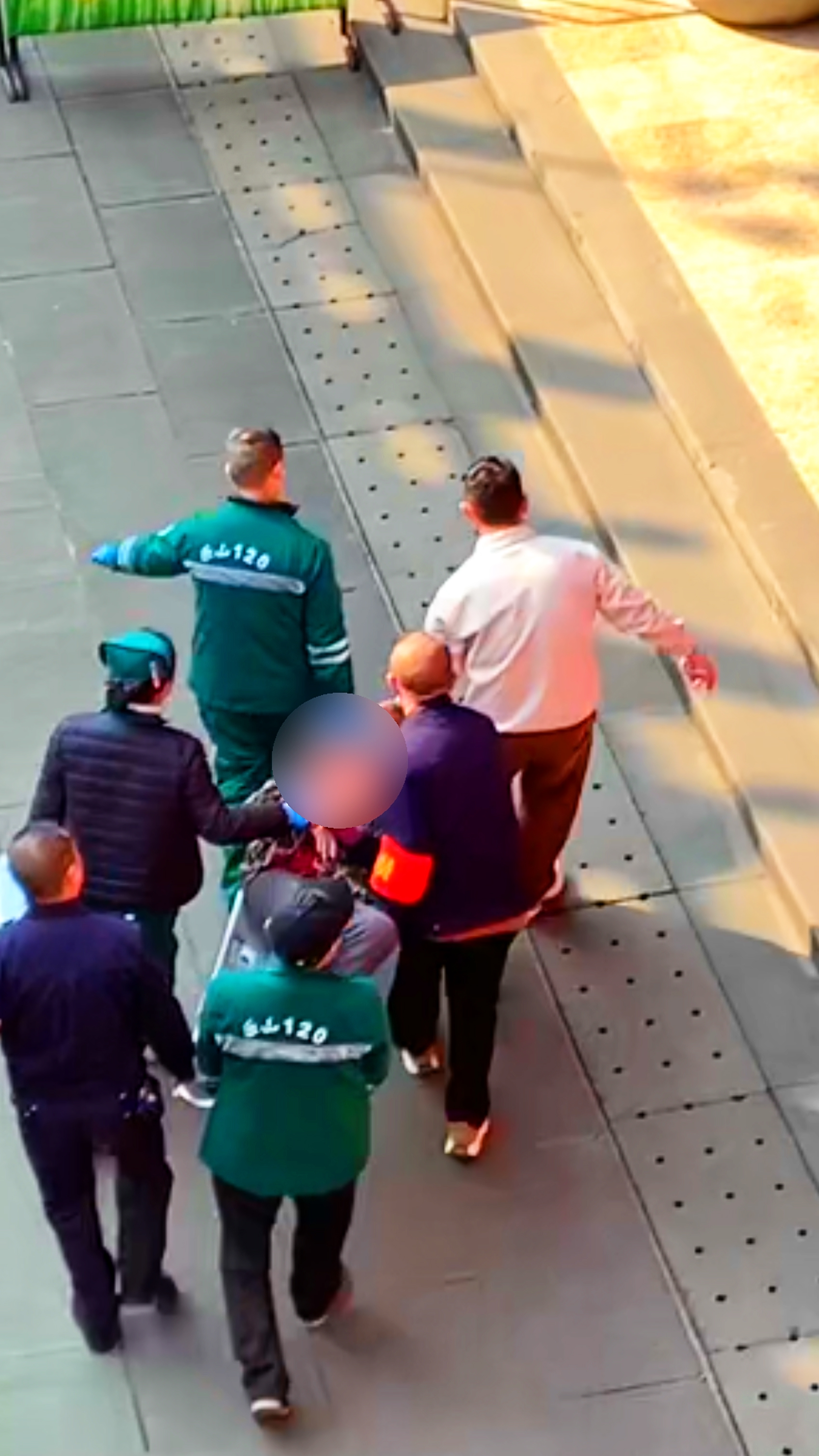等待急救人员到来的过程中,张桂铭一直半蹲在老人身边细心守护,时刻关注着老人的身体状况。救护车抵达后,他主动协助医护人员将老人抬上救护车,完整交接现场处置情况,并一路跟随救护车前往医院,直到老人得到妥善救治、安顿妥当后,才默默离开。