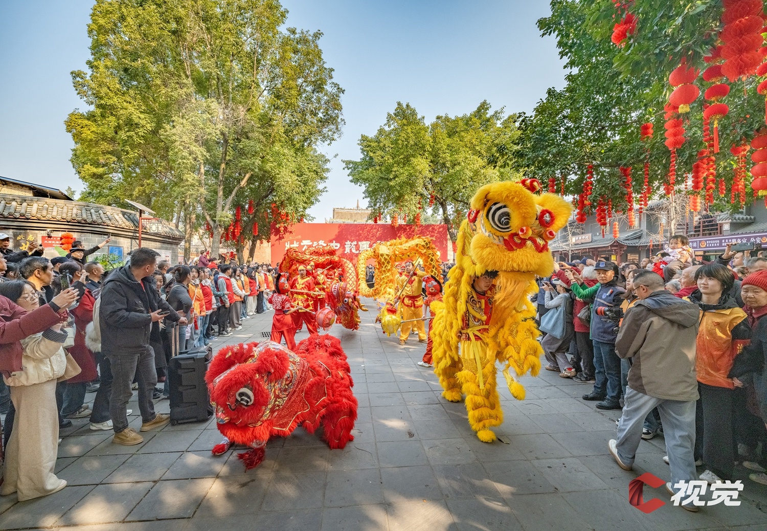 2月21日,内江市资中县新春庙会“大年初五迎财神 关帝巡游来送福“活动开启,舞狮舞龙表演吸引众多游客围观。C视觉签约摄影师 王治 摄