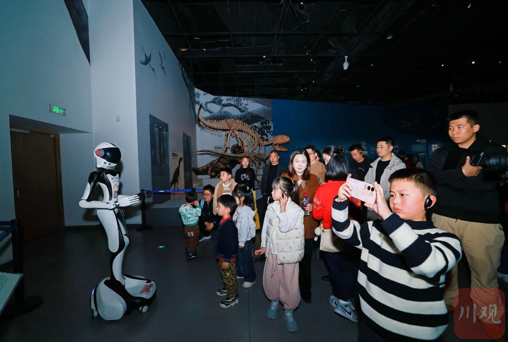 春节期间,人形智能机器人“小芯”身着财神服饰担任迎宾大使,定时定点送上新春祝福,并在缤纷生命厅、龙行川渝厅等展厅,通俗讲解恐龙知识与自然生态,让科普更具互动性。智能机器狗化身“赛博向导”,带领观众逛展研学,实现“遛娃+科普”双重体验。机甲天团震撼巡游,将东方神话与科幻机甲结合,用潮流形式让传统年味与科技感相融。