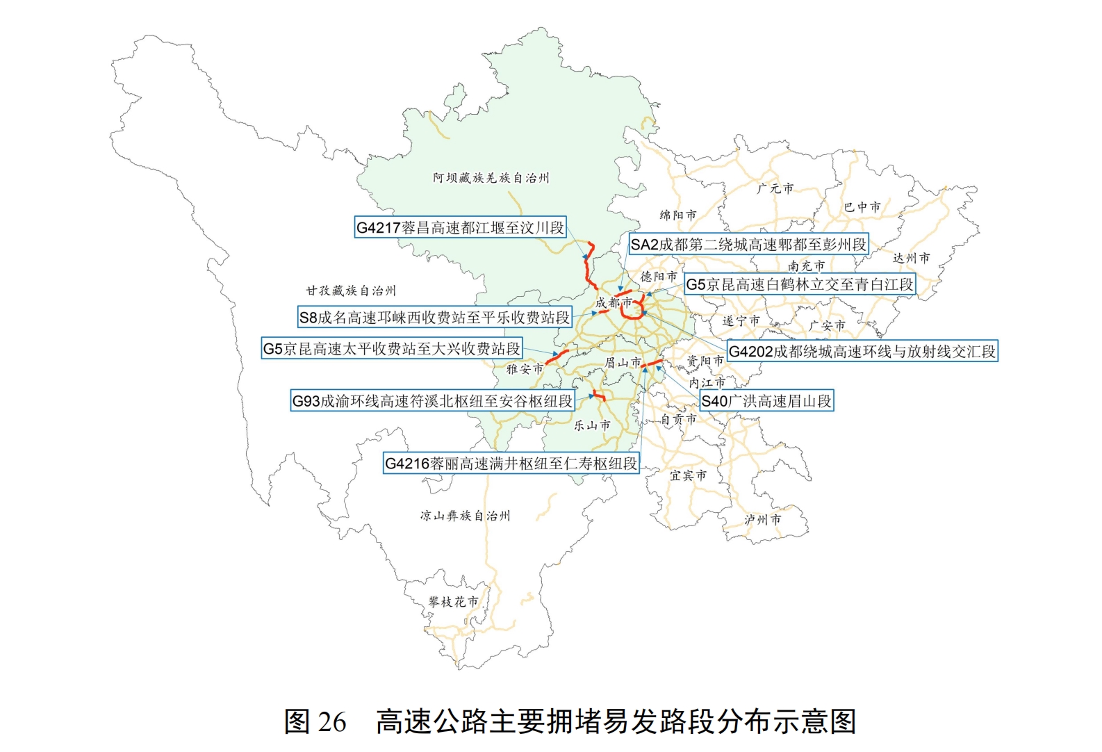这些高速公路路段容易拥堵