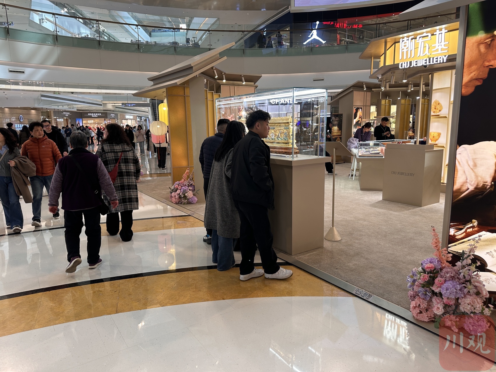 这个春节期间,成都万象城中厅迎来了潮宏基珠宝臻宝博物馆的九龙壁藏品全国首展,吸引不少消费者驻足参观,并带动了消费者选购金饰。