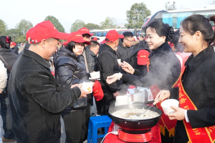 “吃碗汤圆,祝大家一路平安!” “喝杯姜茶,暖和一下再出发。”2月22日清晨,广元市旺苍县客运中心暖意融融,140名旺苍籍务工人员,在政府部门工作人员和亲友的祝福声中,登上“点对点” 返岗专车,开启新一年外出务工奋斗历程。