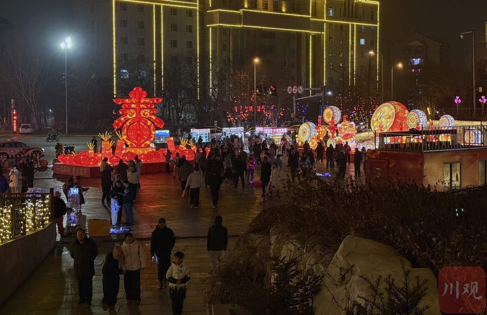 始建于1057年的锦州古塔,作为城市的重要历史地标,在夜色中静静伫立。沿湖铺展的花灯流光溢彩,烘托出浓厚的节日氛围。园区内,市集汇聚非遗手作与地方特产,科技光影秀点亮夜空,马年主题花灯造型别致。财神巡游互动送福、民俗表演接连不断,游客在赏灯、逛市、品美食中,沉浸式体验辽西年俗的独特魅力,共度欢乐祥和的新春佳节。