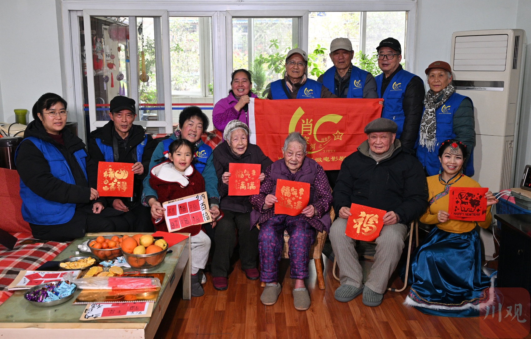 肖家河之星微电影剧团志愿者为高龄老人们表演节目。