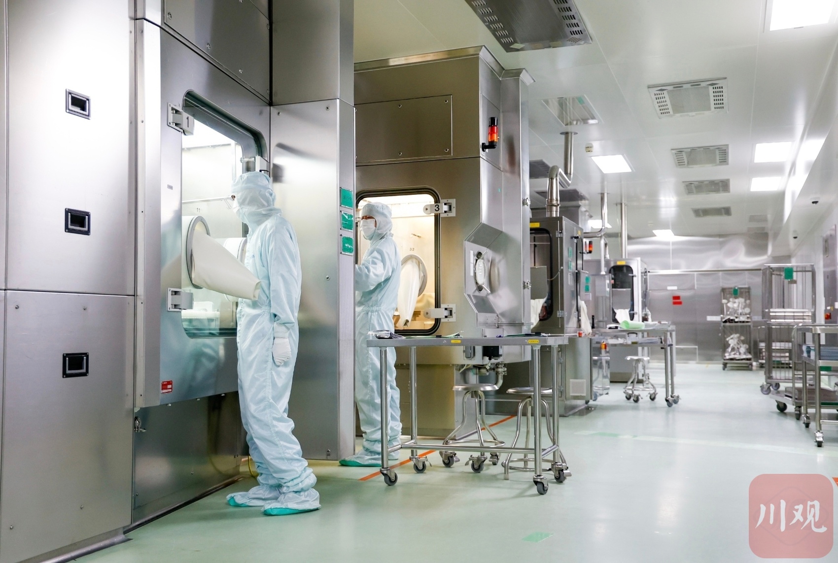 健进制药无菌制剂生产车间内,工作人员正在操作间作业。