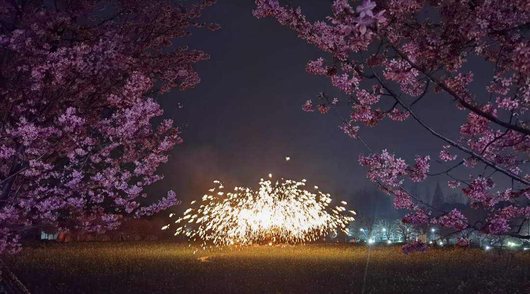 照片里的家乡故事:大年初七的晚上7点,到大观和街子交界的问花村打卡,现场观看了问花村村晚大舞台的节目表演和打铁花现场表演,愉快地度过了初七这一天。
