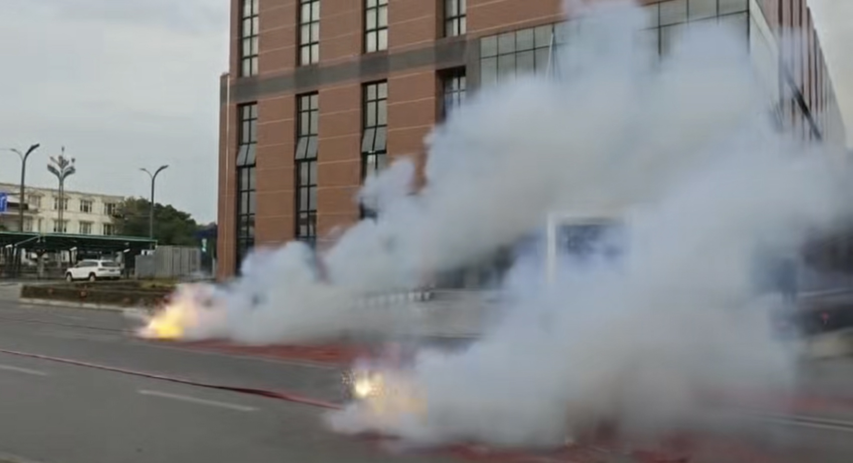 正月初八早上8点08分,四川华体照明科技股份有限公司大门口响起开工鞭炮。受访者供图