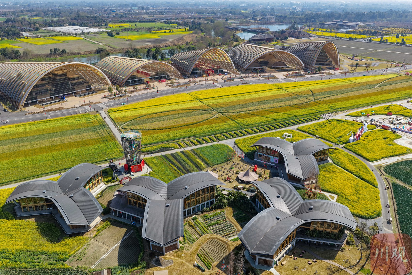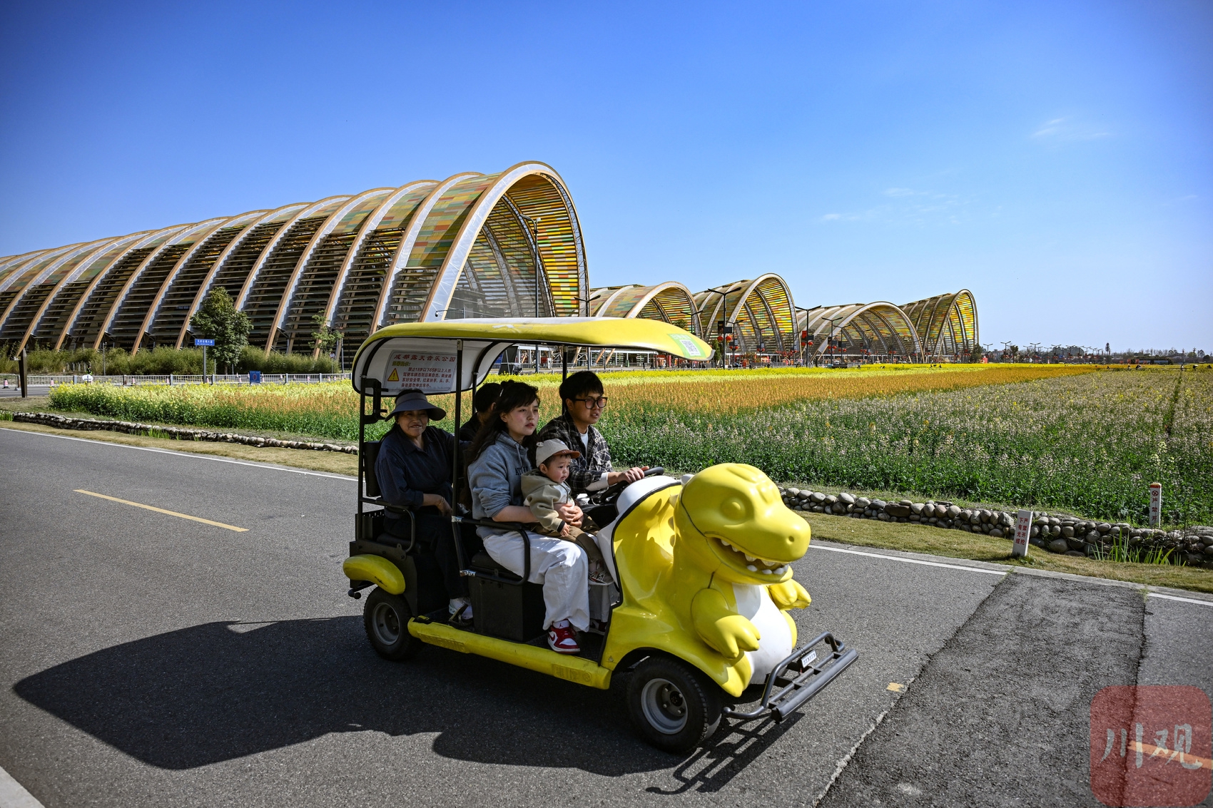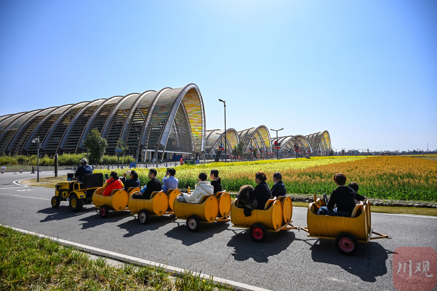 2026年2月24日,位于成都市新津区的天府农博园里的大片油菜花争相开放,吸引大批游客前来观光。