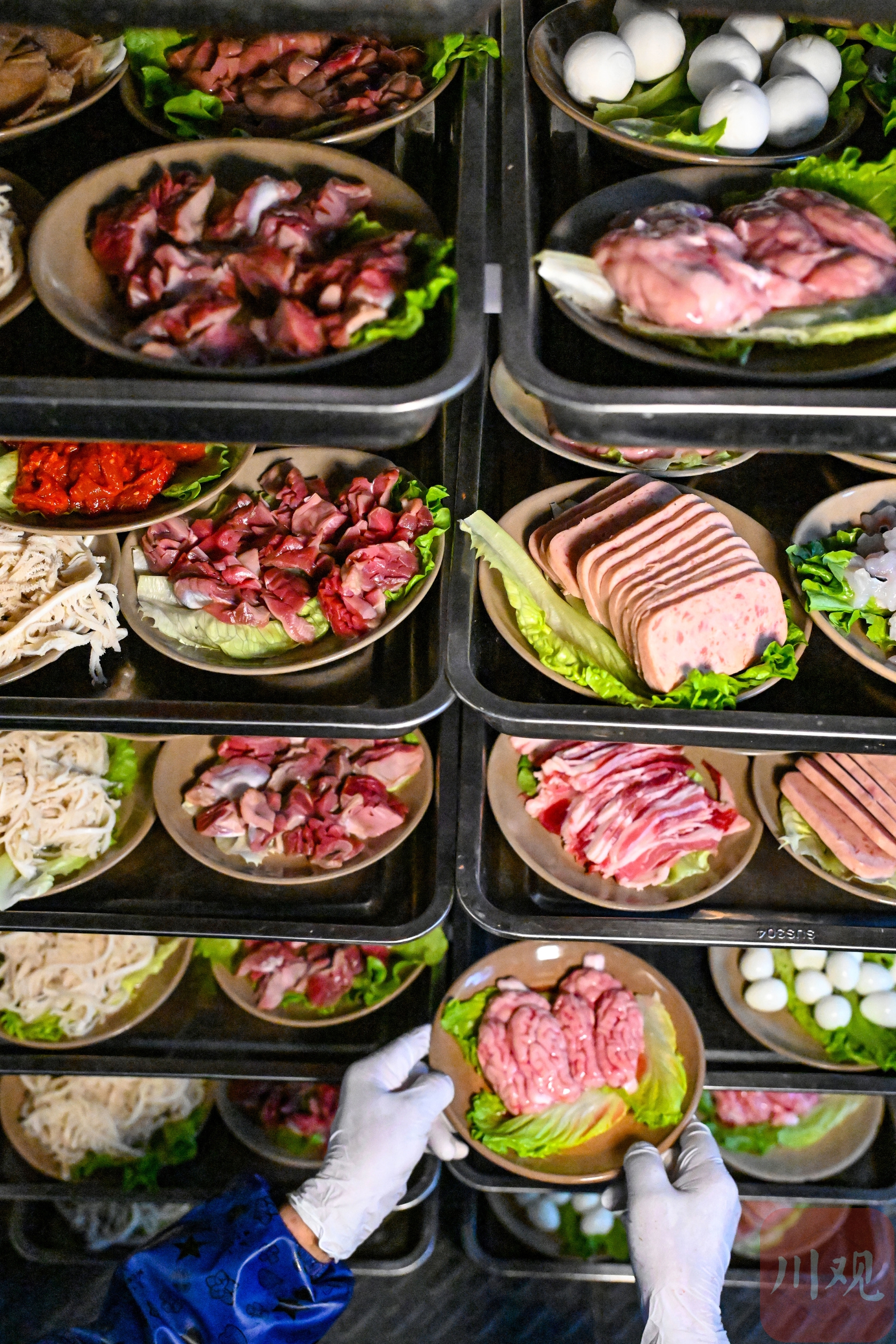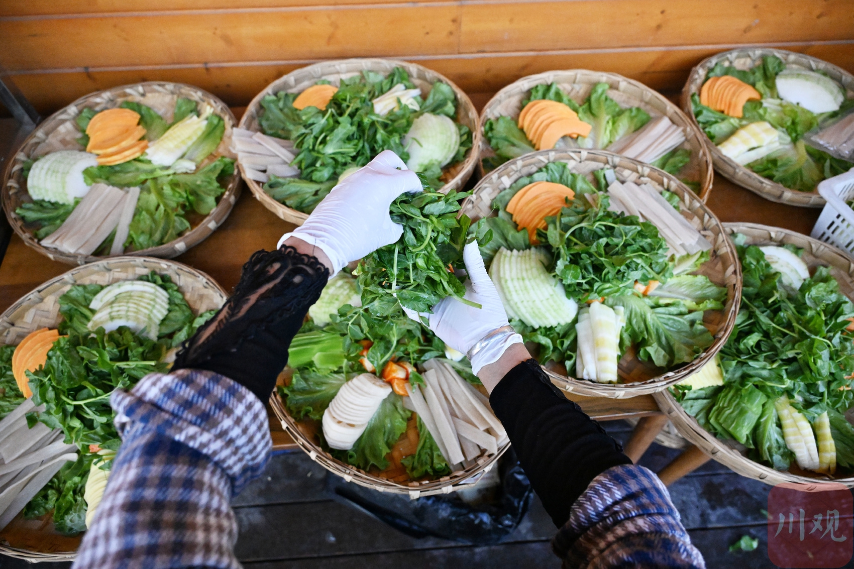 2026年2月24日,在成都市新津区的天府农博园,“花田火锅”工作人员为客人配制菜品。