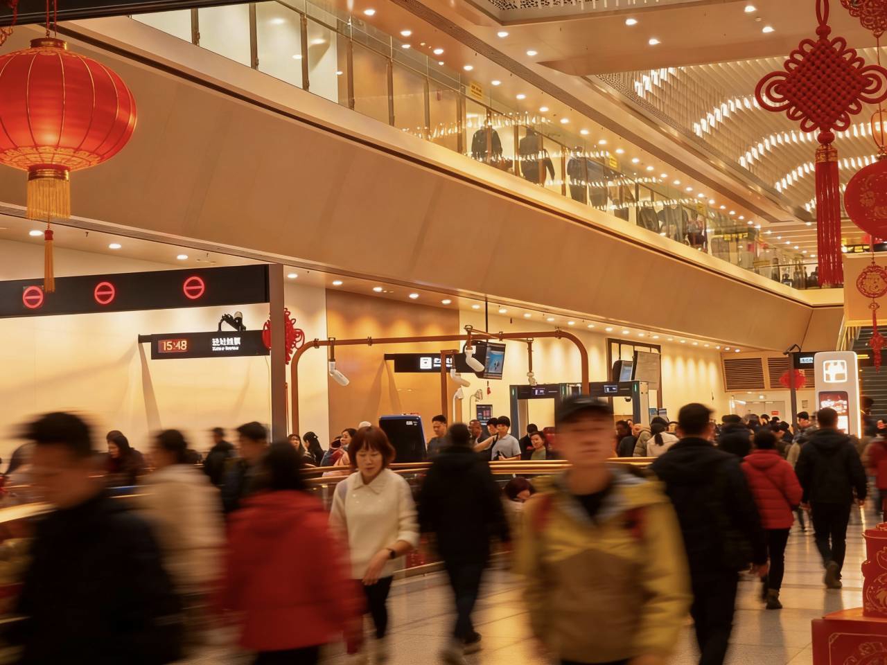 春节期间,成都地铁站人潮涌动。