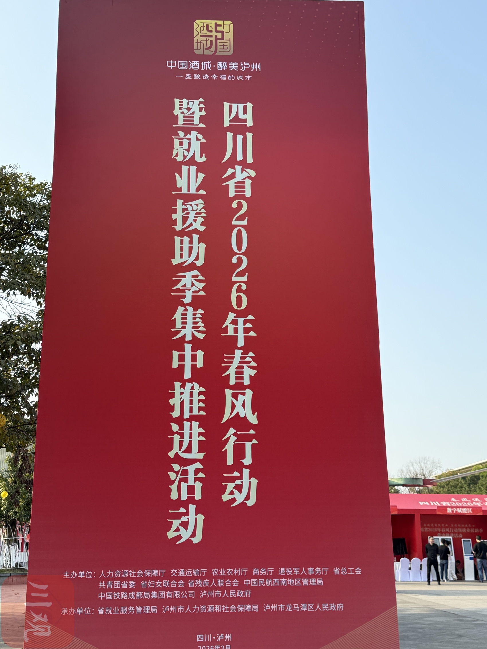 为集中做好困难群体就业兜底帮扶、促进农村劳动力就业增收,省人力资源社会保障厅联合省交通运输厅、省农业农村厅等10部门,在春节收假后第一时间组织开展四川省2026年春风行动暨就业援助季集中推进活动,为农村劳动者、16~24岁失业青年、未就业高校毕业生、登记失业人员、灵活就业人员、退役军人、有劳动能力的残疾人等有求职需求的劳动者,以及有用工需求的用人单位搭建便捷高效的对接平台。2月24日,四川在线记者探访泸州主会场,提前解锁这场就业盛宴的精彩亮点。