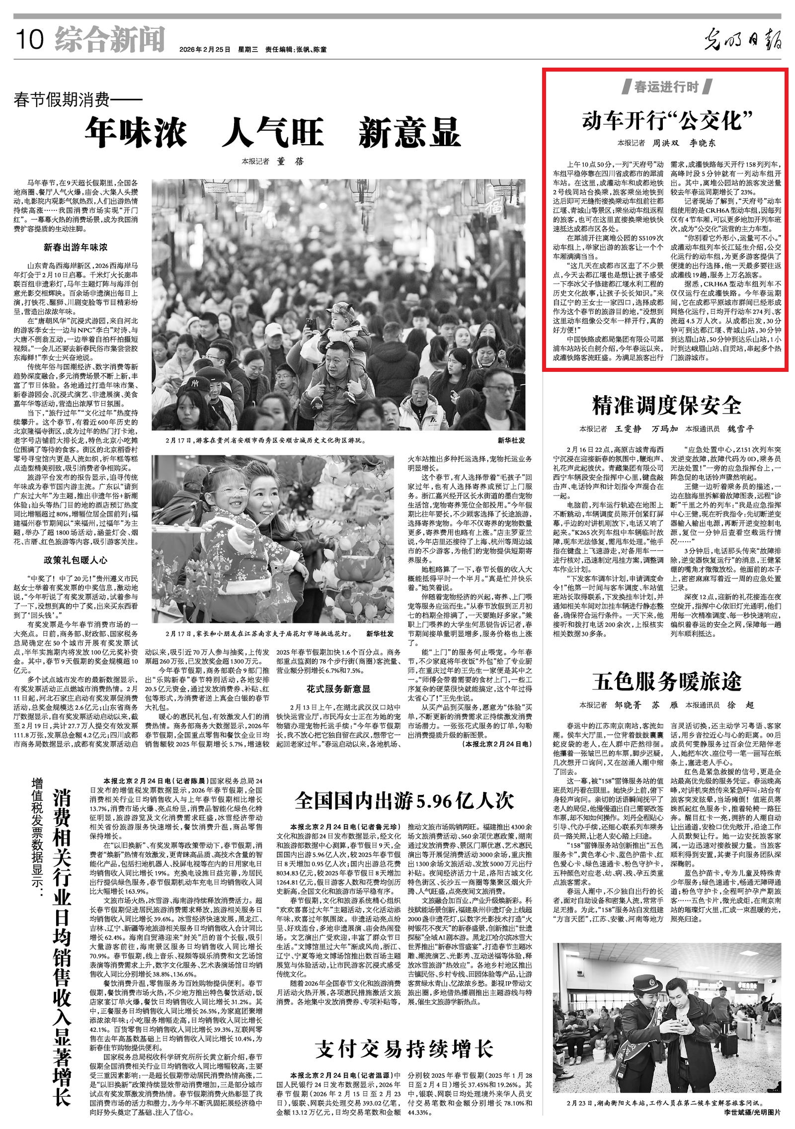 “这几天在成都市区逛了不少景点,今天去都江堰也是想让孩子感受一下李冰父子修建都江堰水利工程的历史文化故事,让孩子长长知识。”来自辽宁的王女士一家四口,选择成都作为这个春节的旅游目的地,“没想到这里动车组像公交车一样开行,真的好方便!”