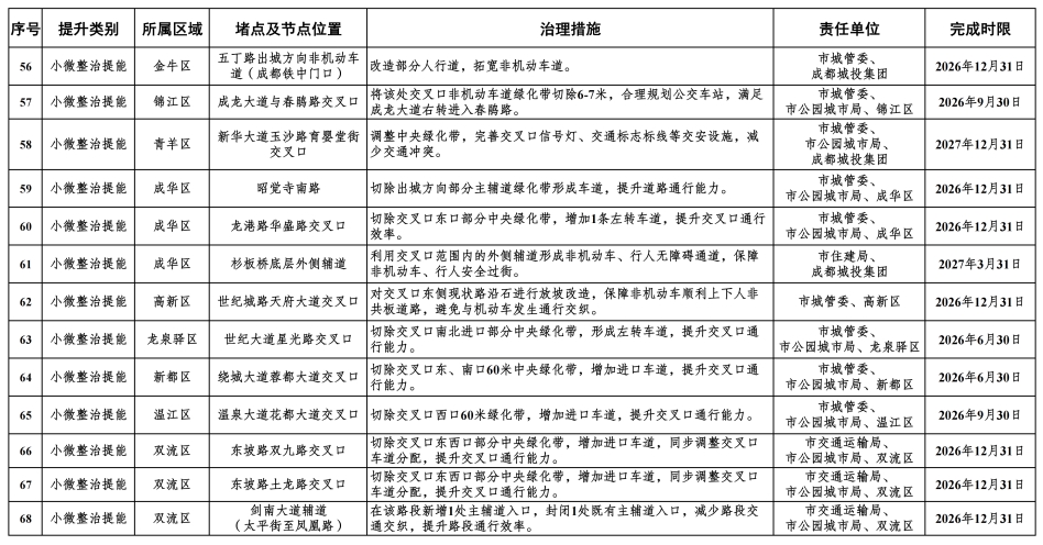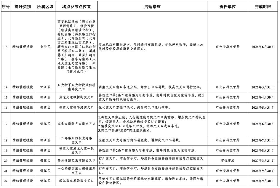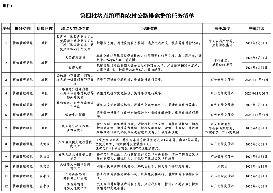 第四批治堵排危任务清单发布后,成都市将继续以“具体化、清单化、项目化、可视化”模式推进交通治理攻坚,“一点一策”破解交通拥堵难题,持续提升城市通勤效率,优化改善交通出行环境。