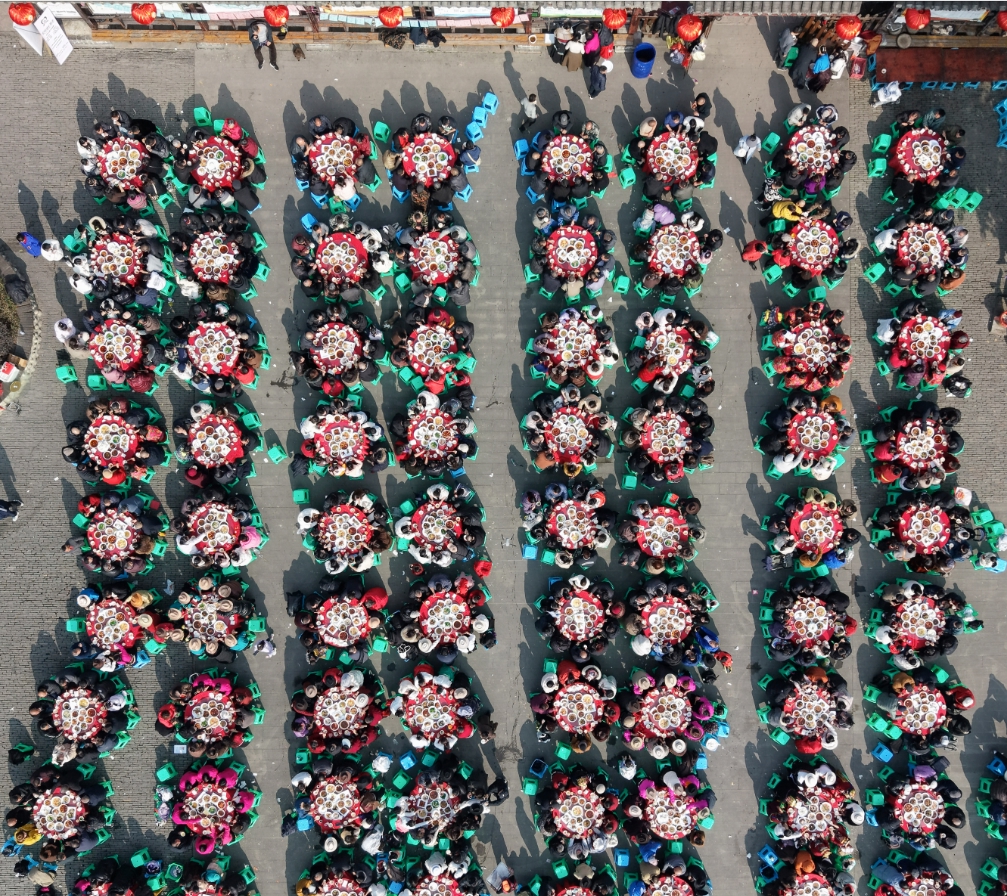 作品简介:成都市郫都区先锋村农夫记忆“年猪宴”开席啦!近千人围坐,烟火漫村,幸福在热气腾腾里流淌。