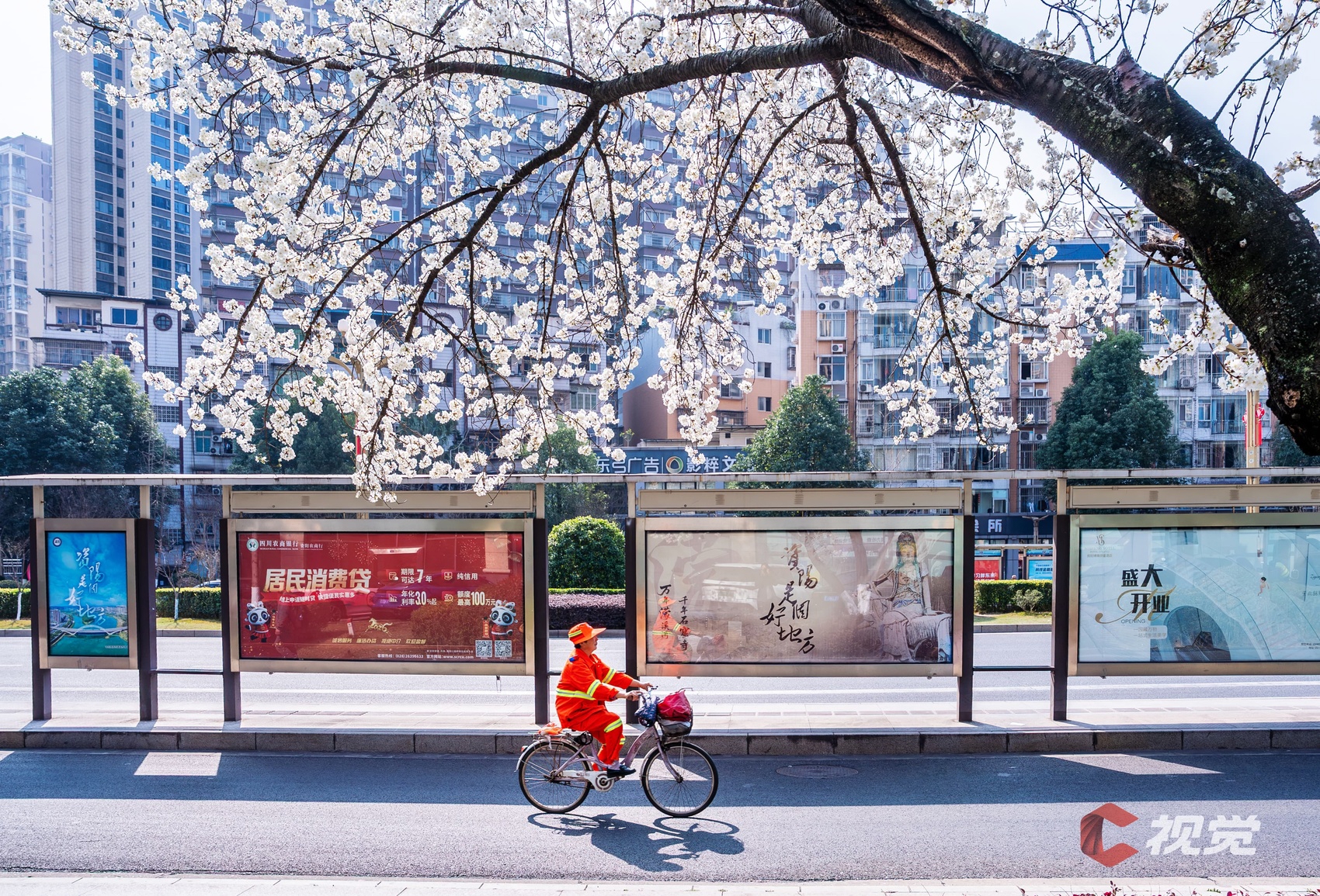 2月25日,资阳市雁江区娇子大道樱花绽放,雪白的繁花将城市装扮得分外美丽。C视觉签约摄影师 张天富