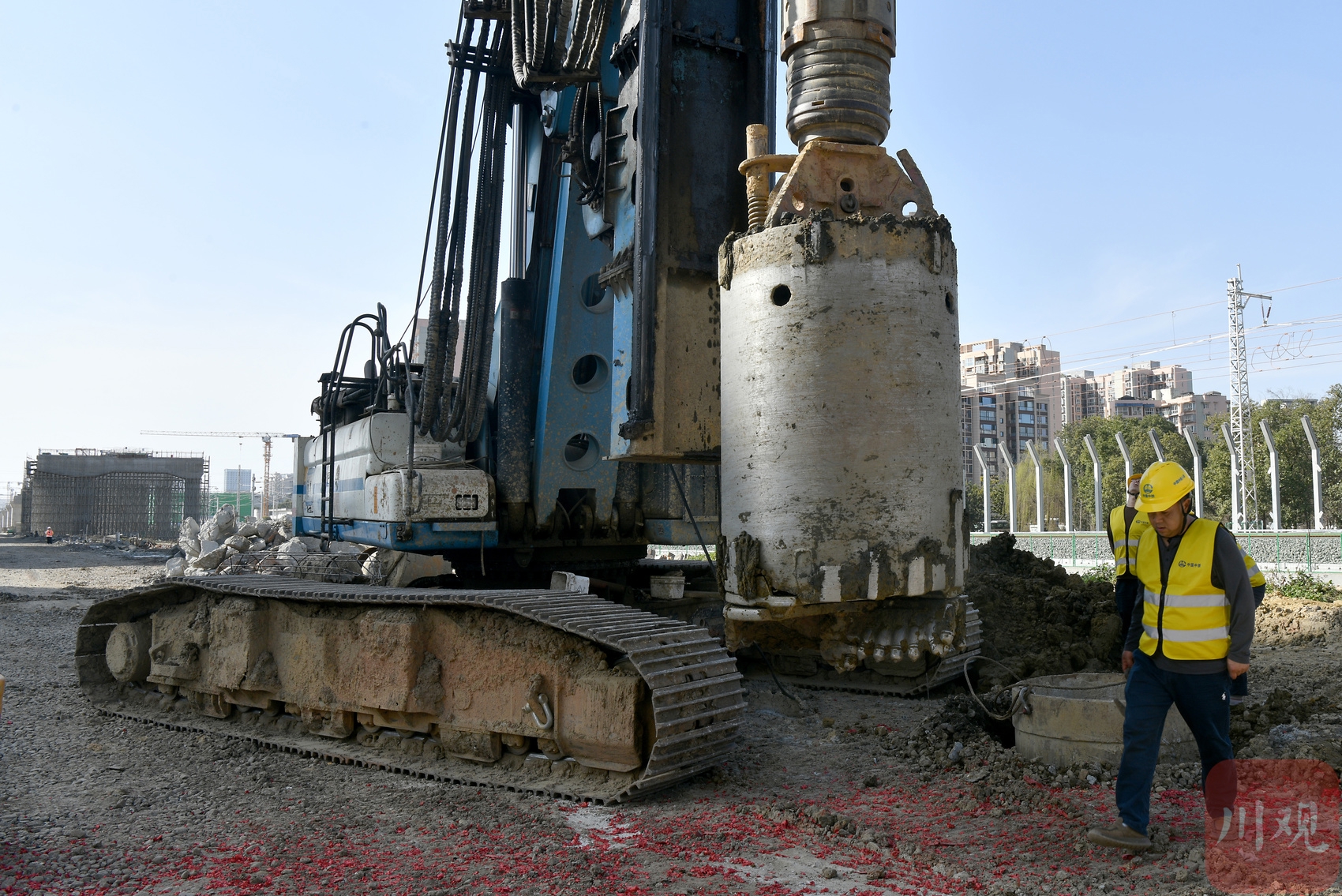 然而,鞭炮声落,现场却很快归于“清闲”——记者环顾四周,偌大的工地上只零星散布着10余名工人,施工点位也仅有一处钻探打桩机在作业,全然没有想象中节后复工应有的热火朝天。