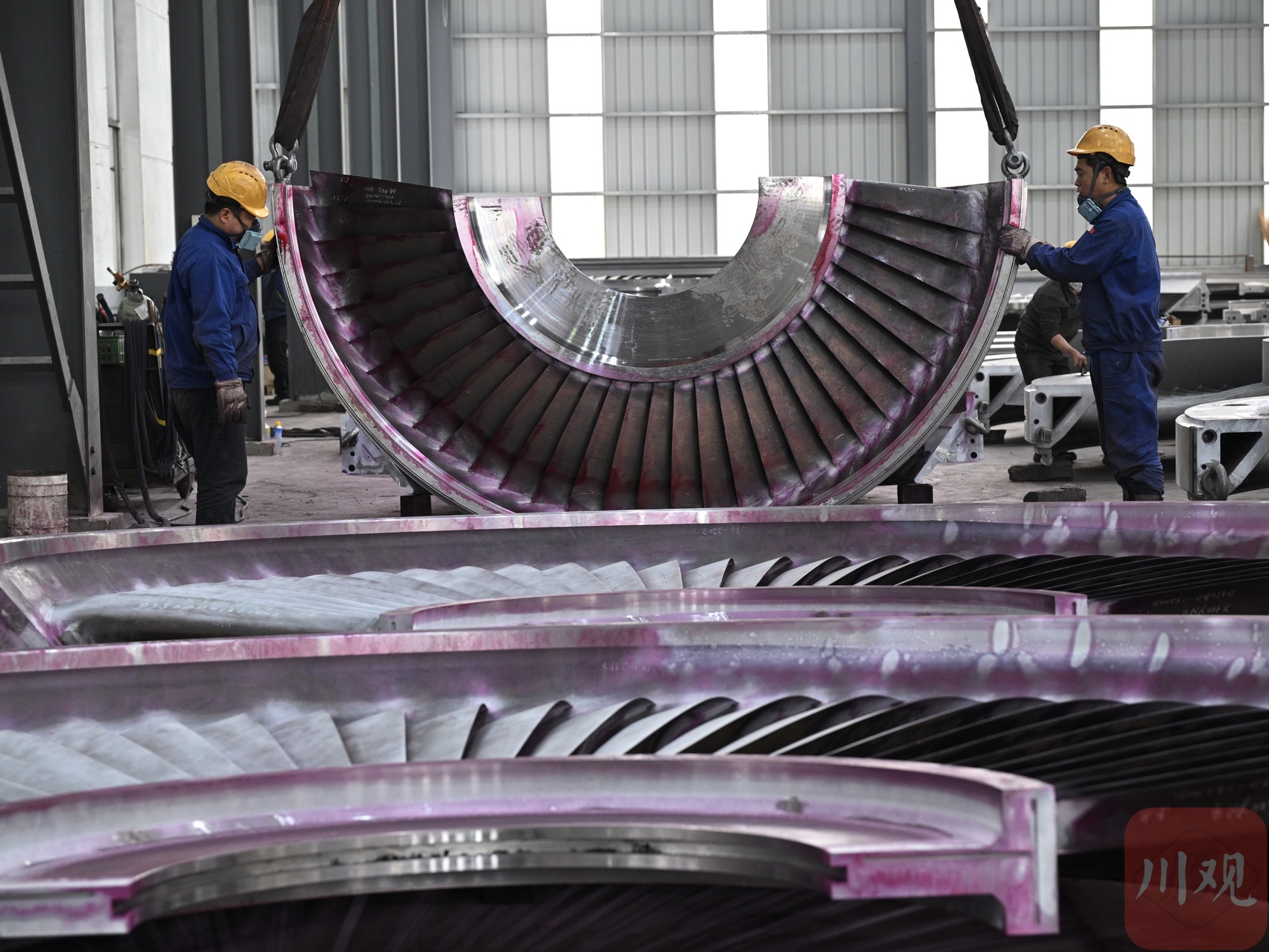 工人进行汽轮机隔板加工。