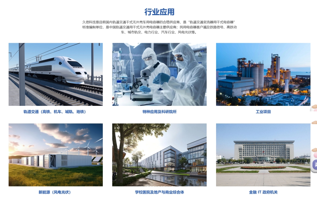 该公司核心产品包括双面金属化双电极薄膜电容器、轨道交通动力系统无外壳干式电容器等高端产品。作为中国中车电容器供应商,久信科技在轨道交通领域实现多项关键材料与产品的国产化替代。