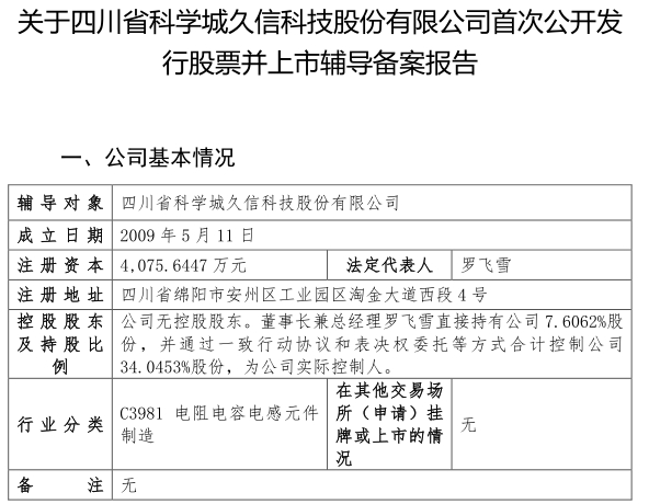 事实上,久信科技拟冲击IPO已酝酿多时。去年7月,该公司由“四川省科学城久信科技有限公司”更名为“四川省科学城久信科技股份有限公司”。罗飞雪在更名仪式上表示,将持续聚焦薄膜电容器,积极推广新型储能电容器以及特种大功率电源系统,扩大市场份额,顺利完成上市辅导,致力于成为功率器件与能源系统领域的科技引领者。