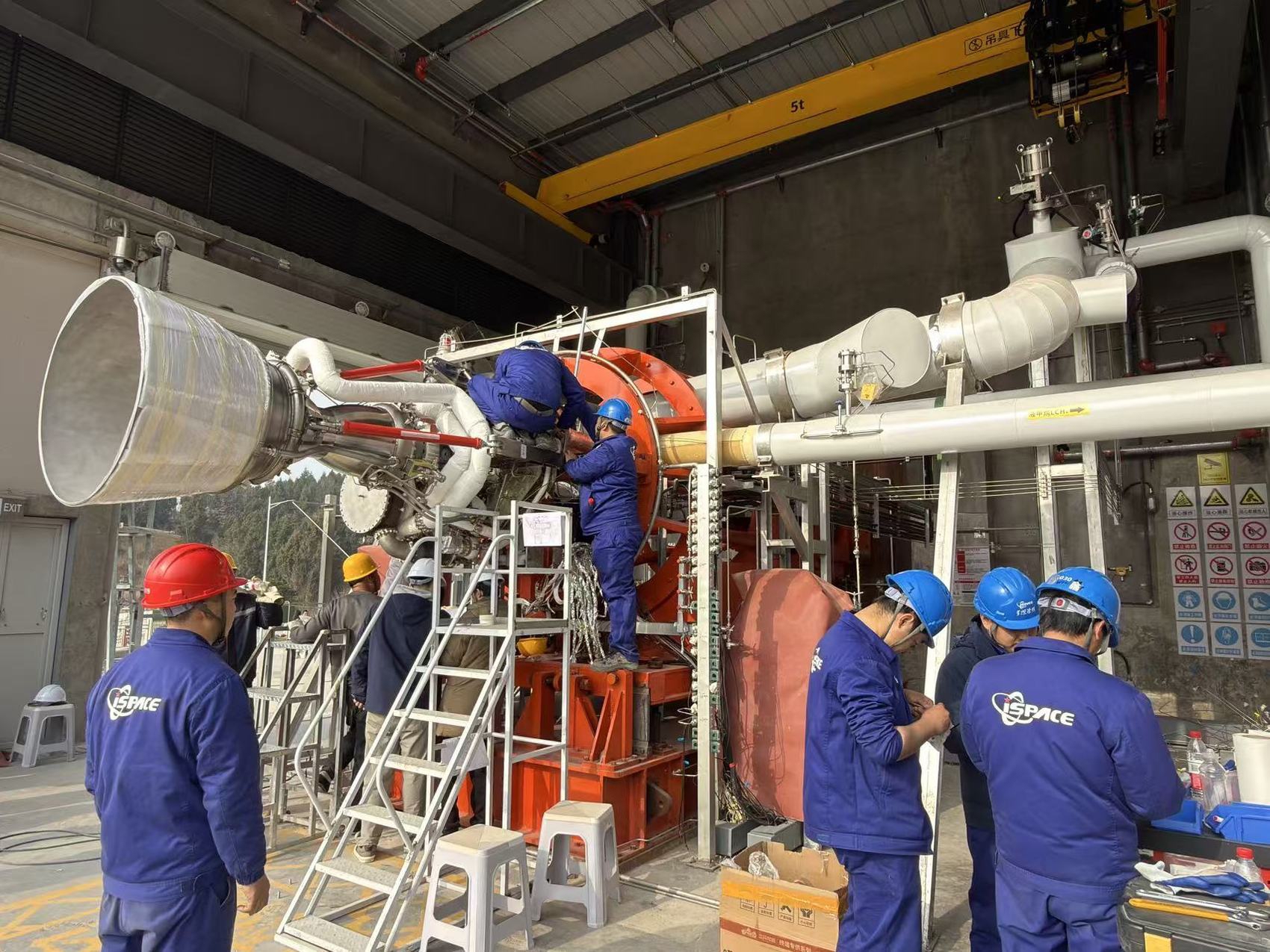 星际荣耀火箭发动机试车台,工作人员正在调试设备。郭超英 摄