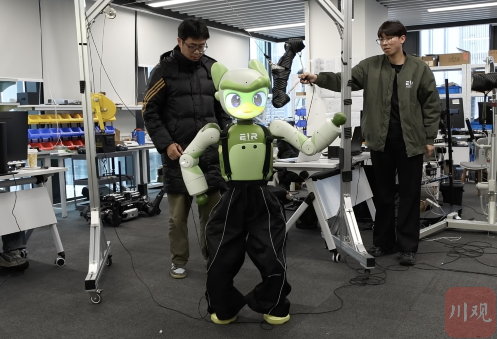 2月26日,记者走进成都高新区AI创新中心的四川具身人形机器人科技有限公司。展厅里,人形机器人穿越碎石、攀爬陡坡,工程师同步优化算法参数。企业首款产品“天行者一号”发布之初步态尚显生涩,如今已能在复杂地形中稳定奔跑、跳跃。团队每天开展超10小时仿真与实景训练,通过海量数据校准动作逻辑,强化动态判断能力。除运动控制外,情感交互机器人“爱湫”已可识别15种情绪,准确率接近九成。企业正建设专业训练场,模拟工业、家庭与应急场景,并拓展文旅、康养等应用合作,推动人形机器人从展示舞台走向真实生活场景。