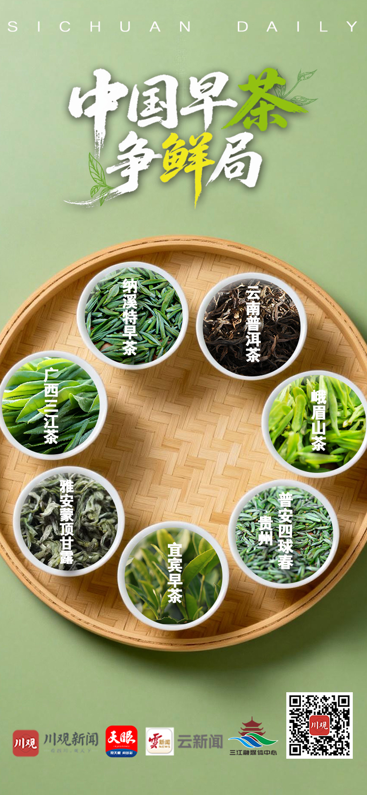 2月以来,春茶之前,从天府之国到多彩贵州,从八桂大地到彩云之南,四川、贵州、广西、云南的早茶陆续开采上市。四川日报联动广西日报、贵州日报、云南日报及省内泸州、宜宾、乐山、雅安等地市,一起循着地球纬度的脉络,尝一口中国春天的第一杯茶吧!