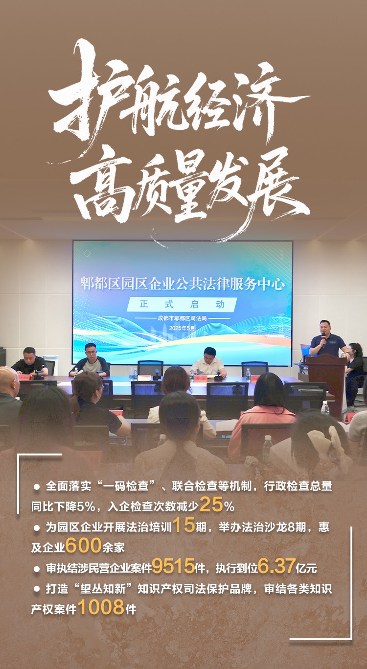 “《风险提示函》帮我们堵住了合同管理上的一大漏洞。”郫都区某科技企业负责人在接受法院的“点对点法治体检”后感触颇深。2025年,郫都区政法系统深入开展“望丛兴商”专项行动,郫都区法院高效审执结涉民营企业案件9515件,执行到位金额6.37亿元,以司法力量助企纾困。