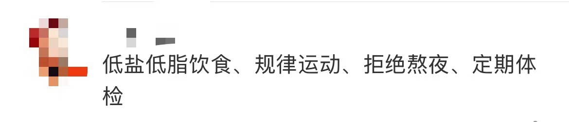 医生提醒,从18岁开始就应关注血压,每年至少测量一次血压,如果发现血压升高,及时就医,遵医嘱服药,切勿自行停药。低盐低脂饮食、规律运动、拒绝熬夜、定期体检。