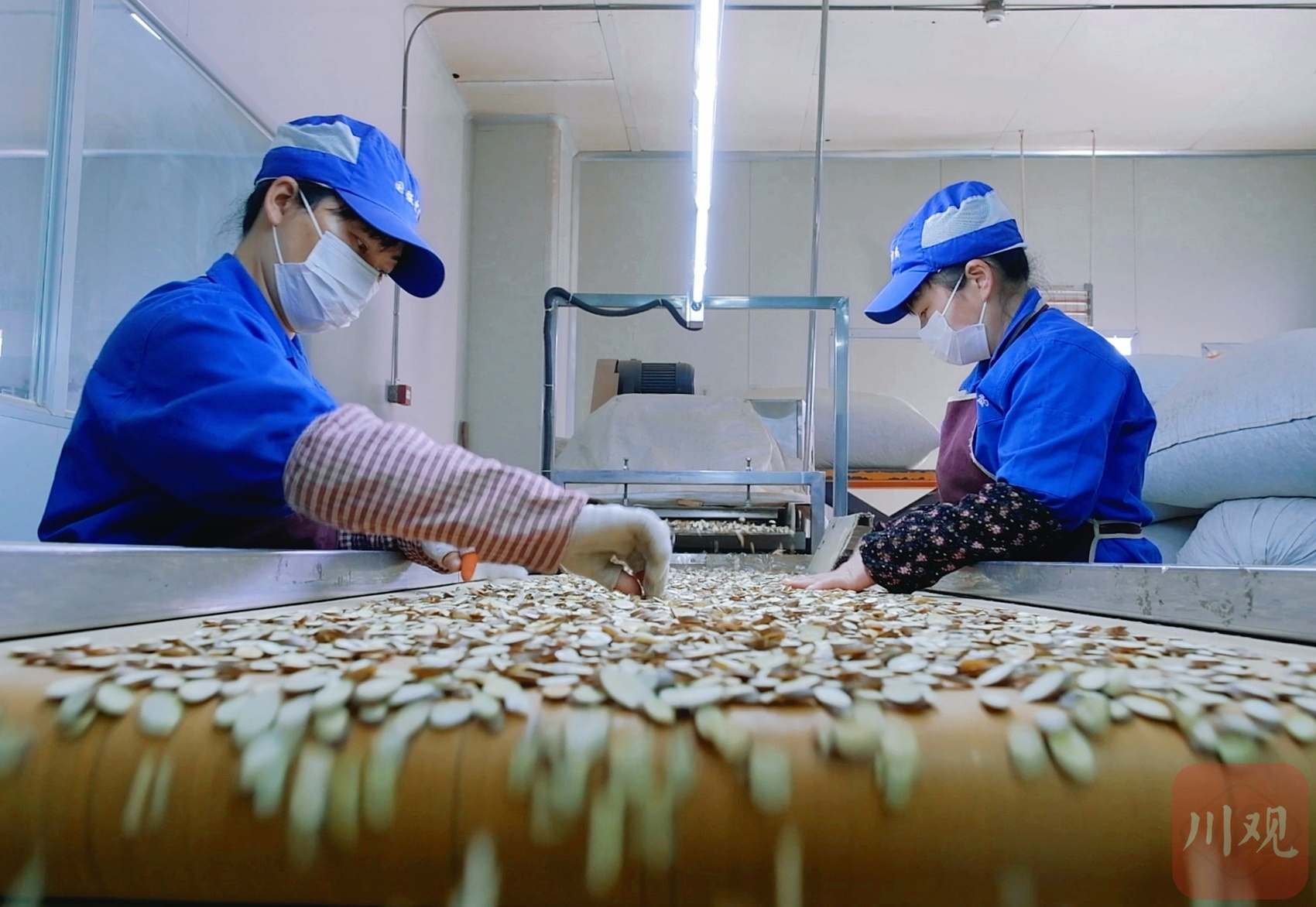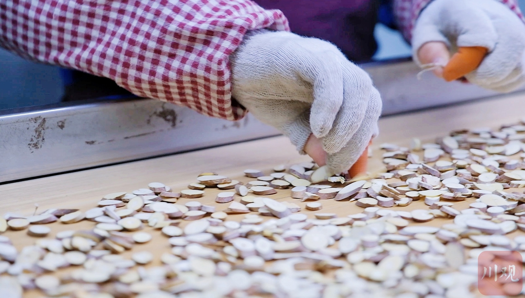 工作人员正在分拣药材。