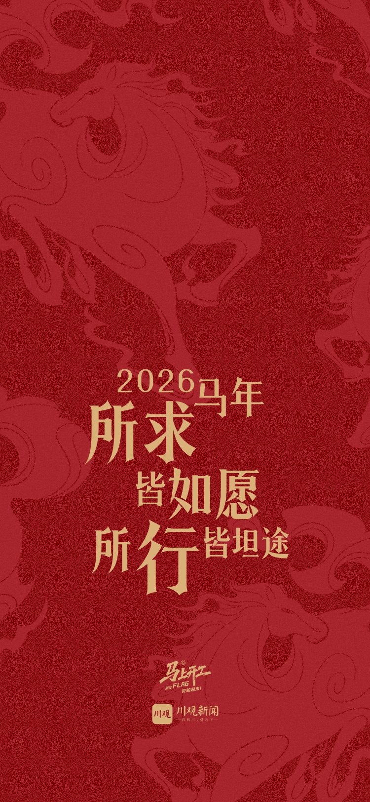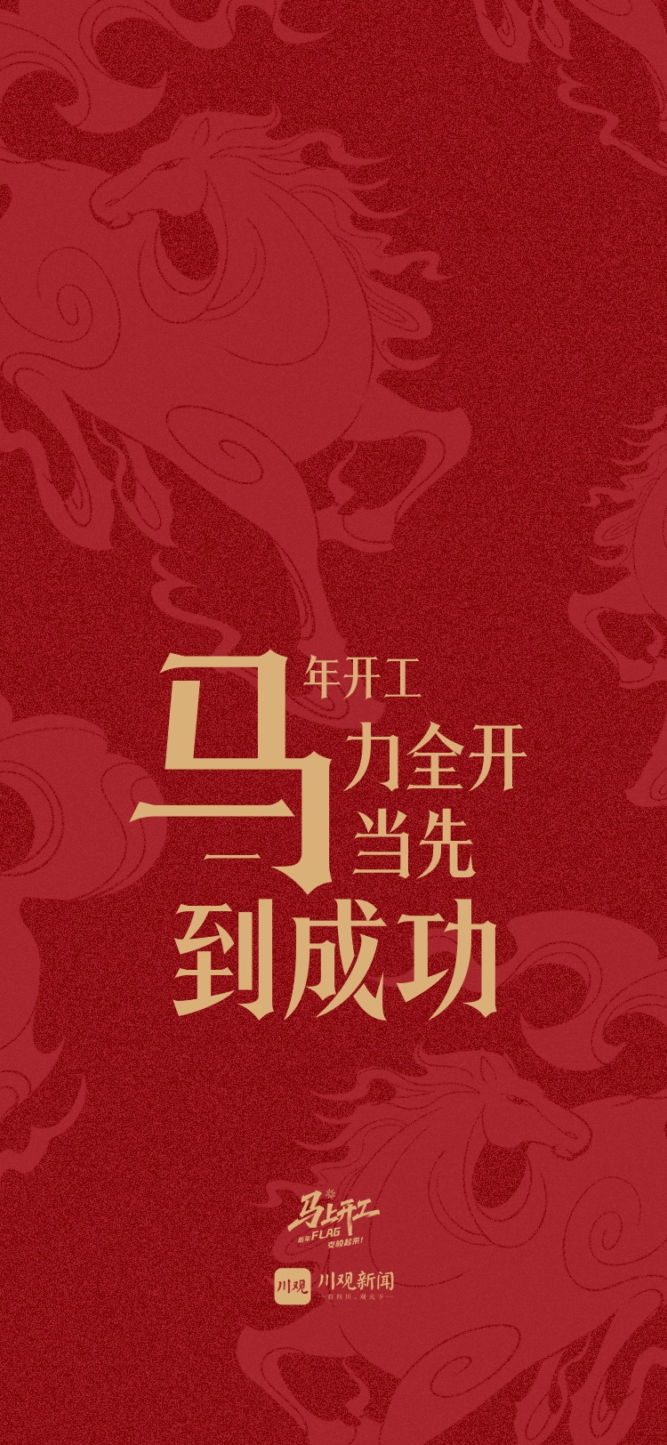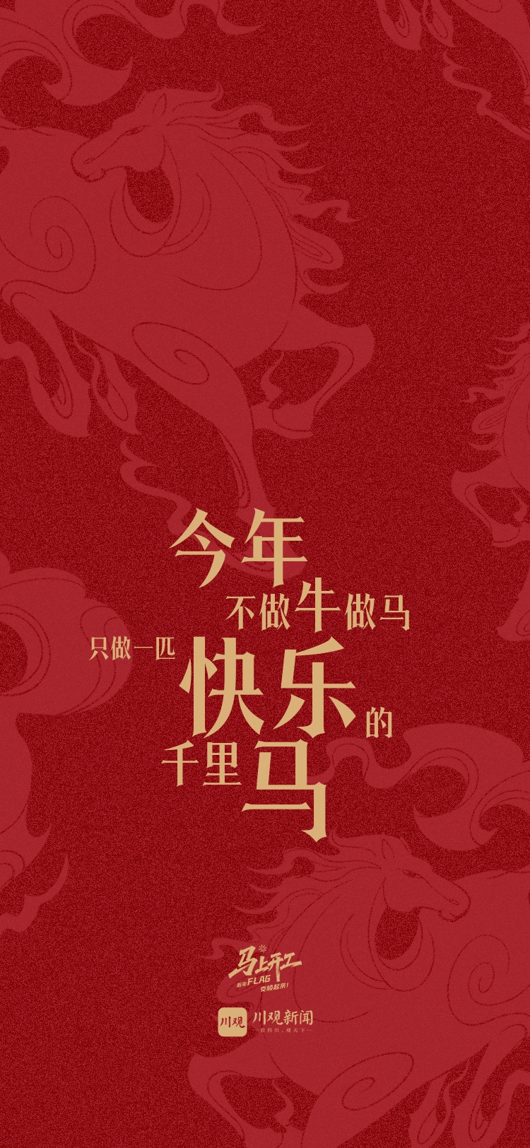 现在,活动虽已结束,但我们对用户的祝福并未停止。为了让这份开工的仪式感和马年的奋斗动力常伴你左右,川观新闻特别将大家的新年寄语与马年元素相结合,精心设计制作成了一份专属的新年礼物——“‘马’上开工 · 新年FLAG”手机壁纸!