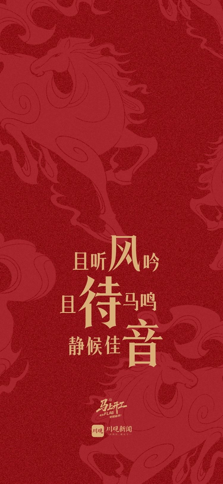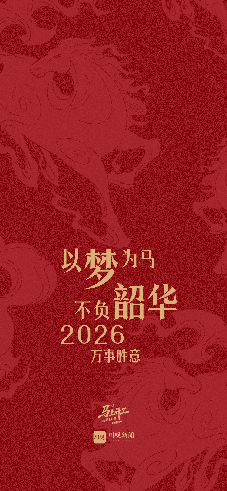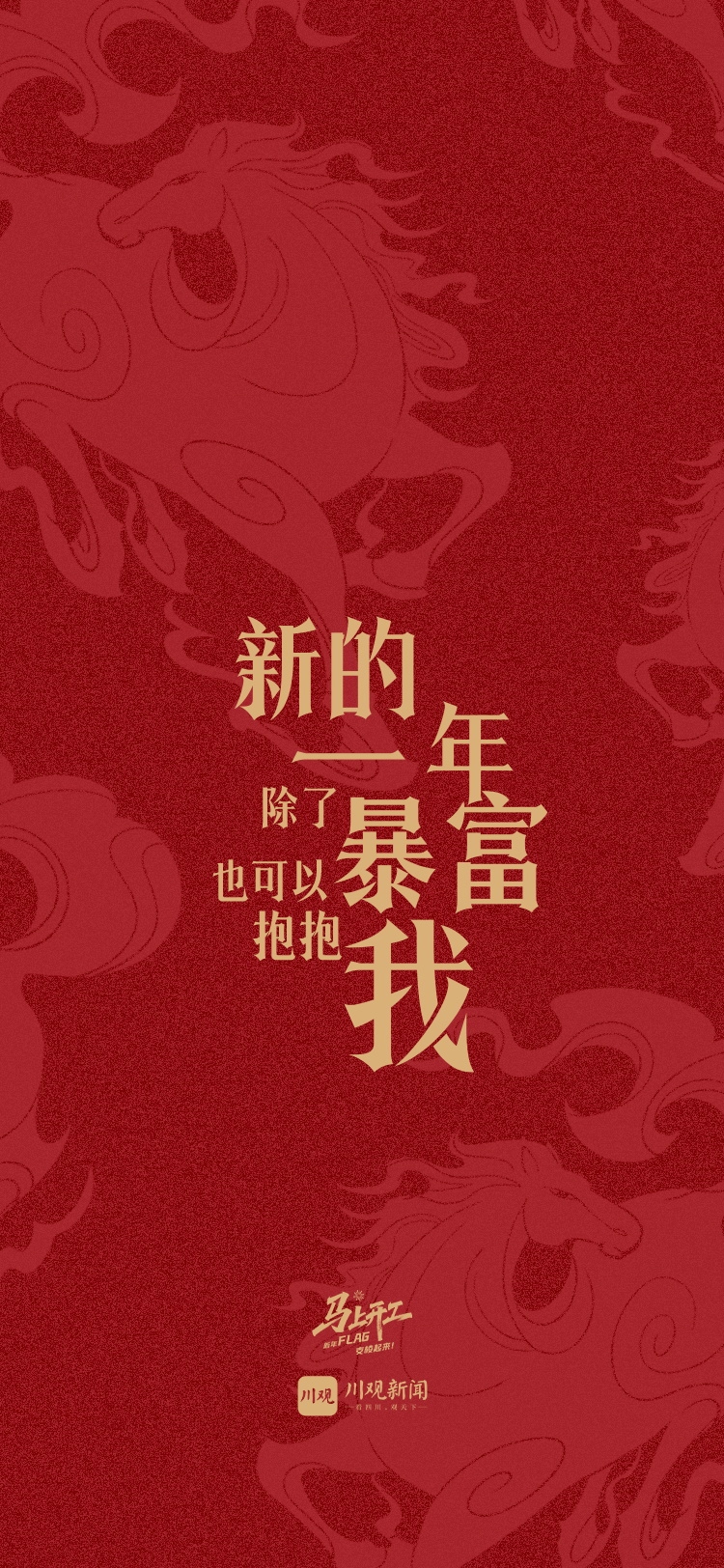 现在,活动虽已结束,但我们对用户的祝福并未停止。为了让这份开工的仪式感和马年的奋斗动力常伴你左右,川观新闻特别将大家的新年寄语与马年元素相结合,精心设计制作成了一份专属的新年礼物——“‘马’上开工 · 新年FLAG”手机壁纸!