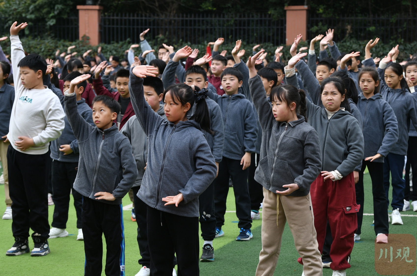 该校大课间以武术为特色(八段锦、太极等),融合足球、篮球、排球三大球及跳绳等多项目,分年级每月轮换,实现“人人参与、项项达标”,保障学生体质健康稳步提升。此前,该校在“四川省第二届中小学校大课间体育活动视频评比”活动荣获一等奖。