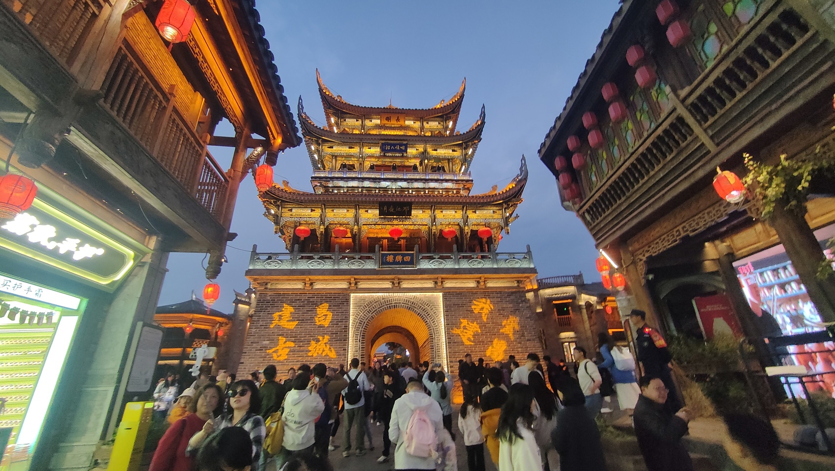 游客夜游西昌建昌古城。何勤华 摄