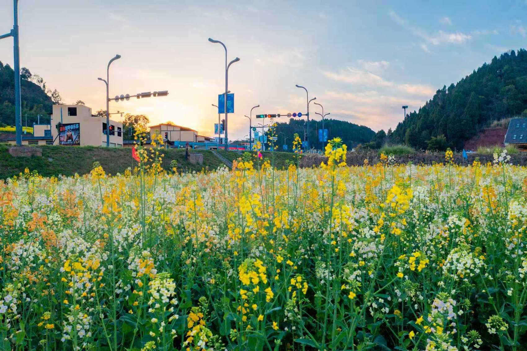 春意渐浓,万物焕新。近日,资阳临空经济区仁里村国际数字游民社区外,成片的七彩油菜花迎来盛放时节。金黄、粉嫩、雪白、淡紫等缤纷色彩在田野间肆意流淌,宛如一幅大自然挥毫泼墨的油画,与远山近水、白墙黛瓦的民居交相辉映,勾勒出一幅醉人的乡村田园画卷。