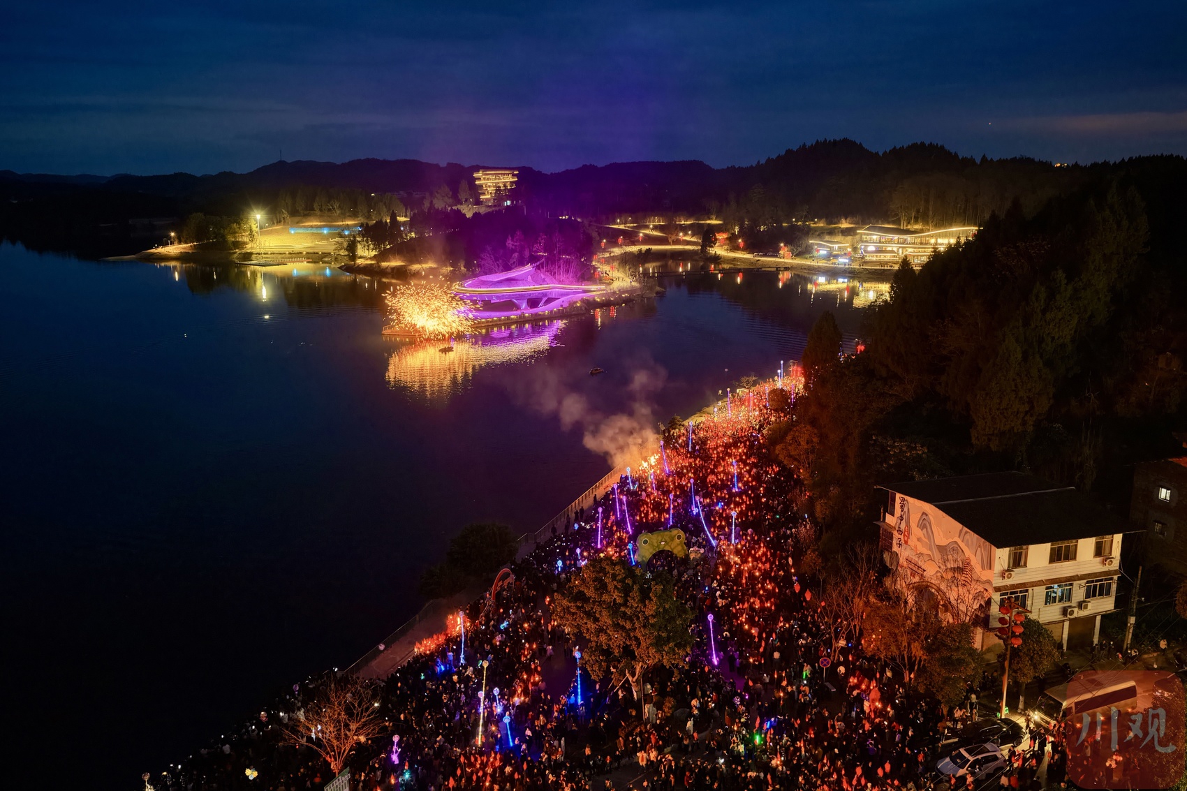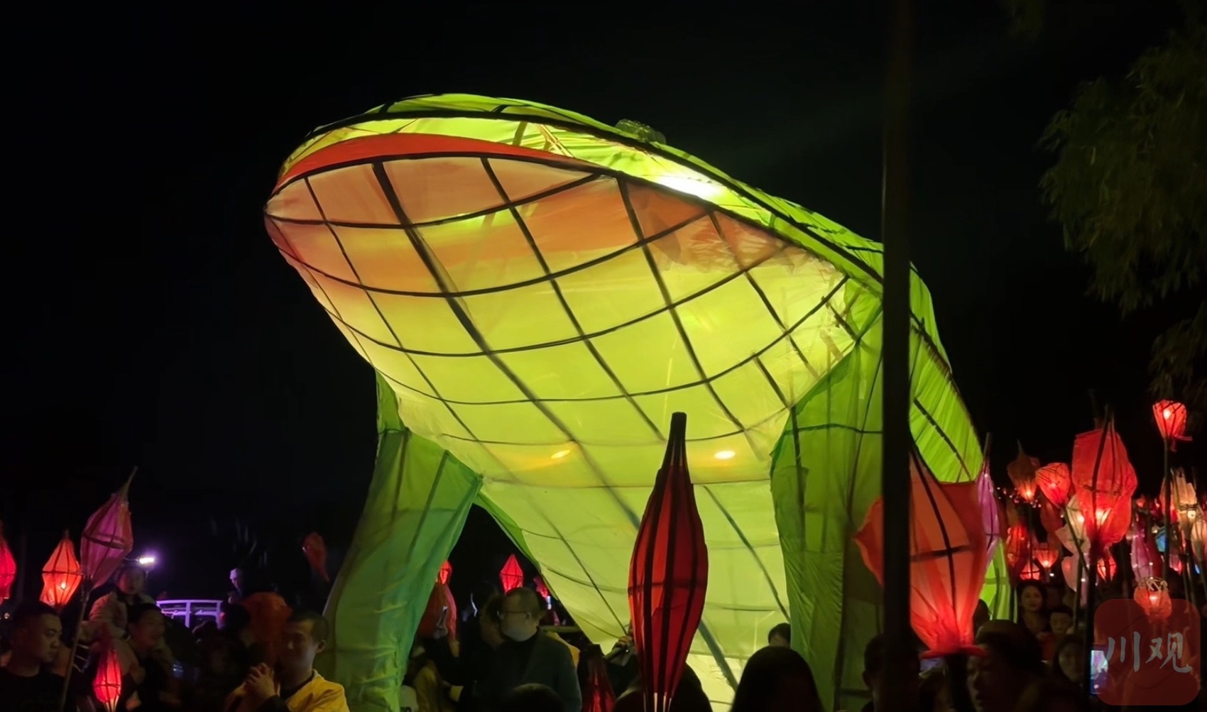这就是每年正月十四晚上,遂宁、南充等地区流行的地方民俗活动,也是四川省非物质文化遗产代表性项目——“送蛴蟆”。今年3月2日(正月十四)晚上,在遂宁市蓬溪县赤城湖、南充市西充县莲池镇等地,“送蛴蟆”民俗活动同时上演。数万人手持“蛴蟆灯”,参与这场热闹的民俗活动。