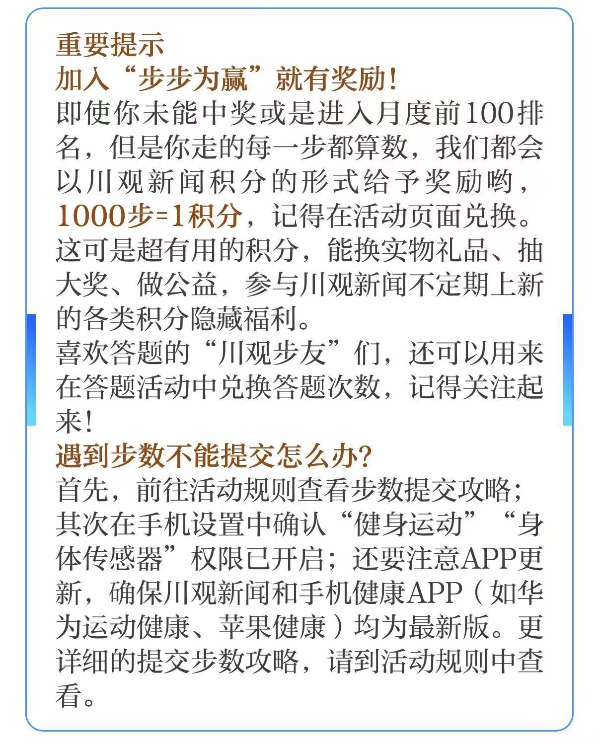 温馨提示:川观新闻工作人员将尽快联系“铁脚板奖”获得者,为您寄出川观新闻“步步为赢”文创手机臂包,助力您步步为“赢”。