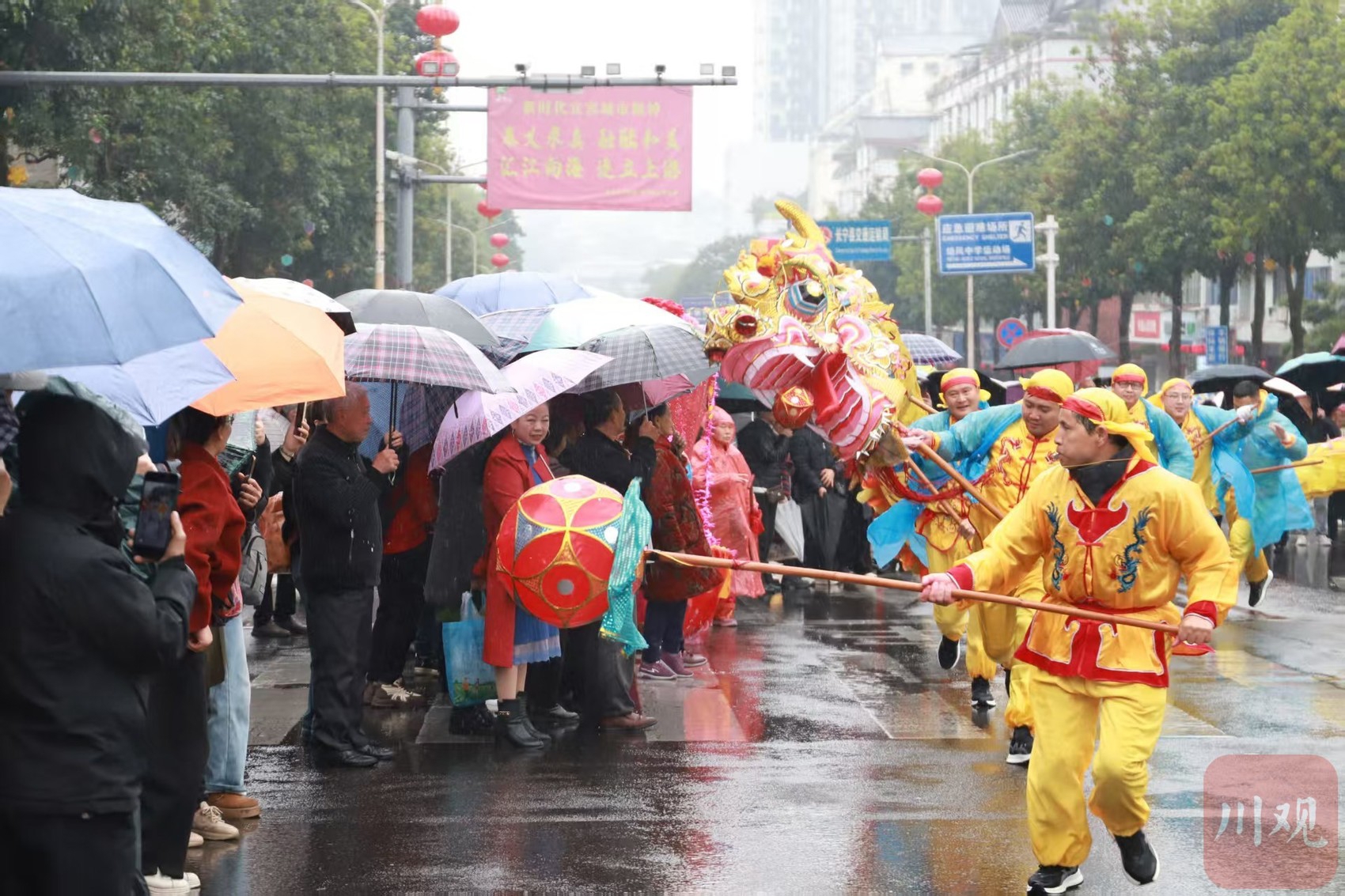 长宁县大街上的民俗巡游队 张梦露摄