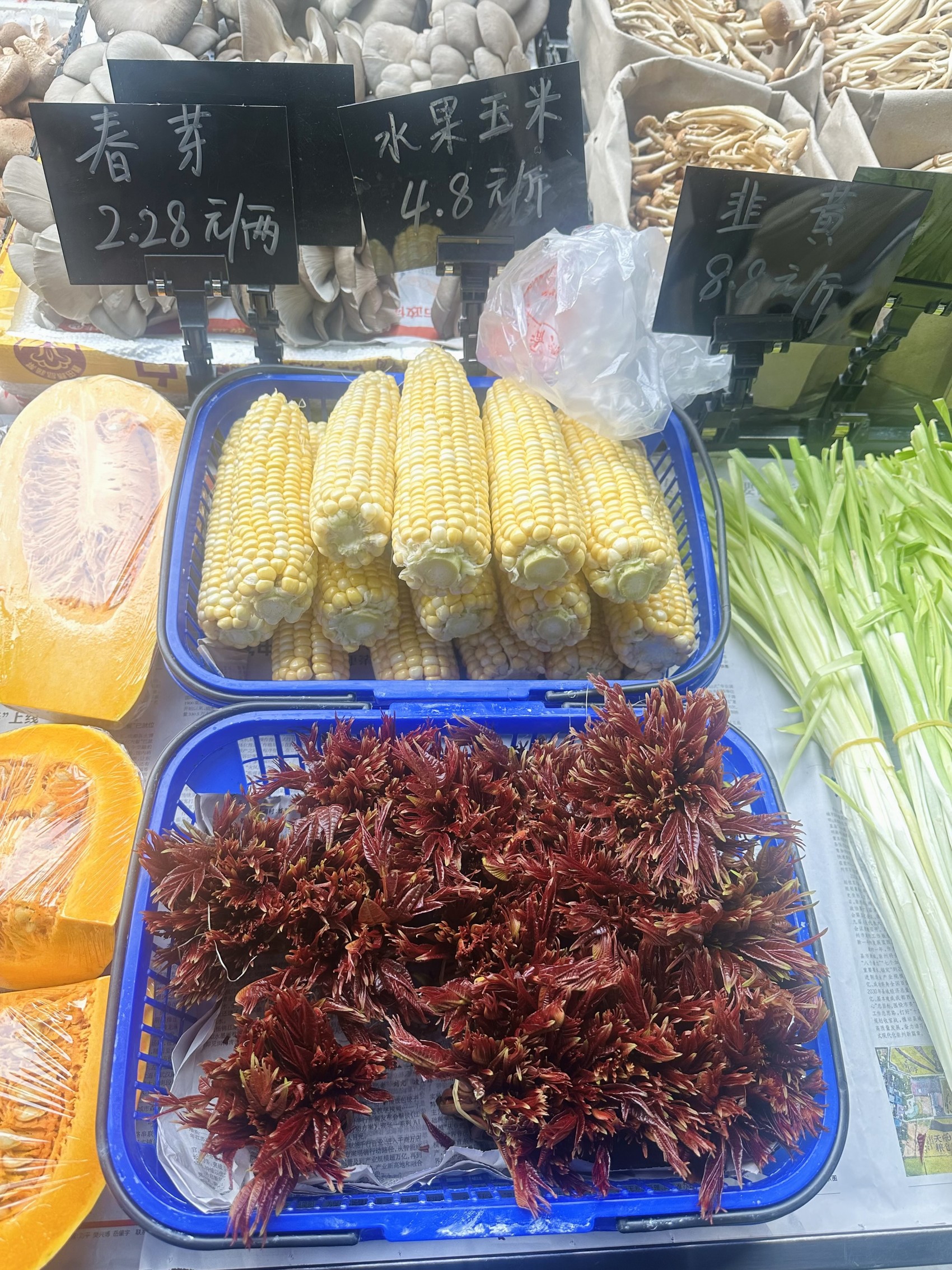 青羊区蜀辉路的农贸市场,香椿标价2.28元/两。