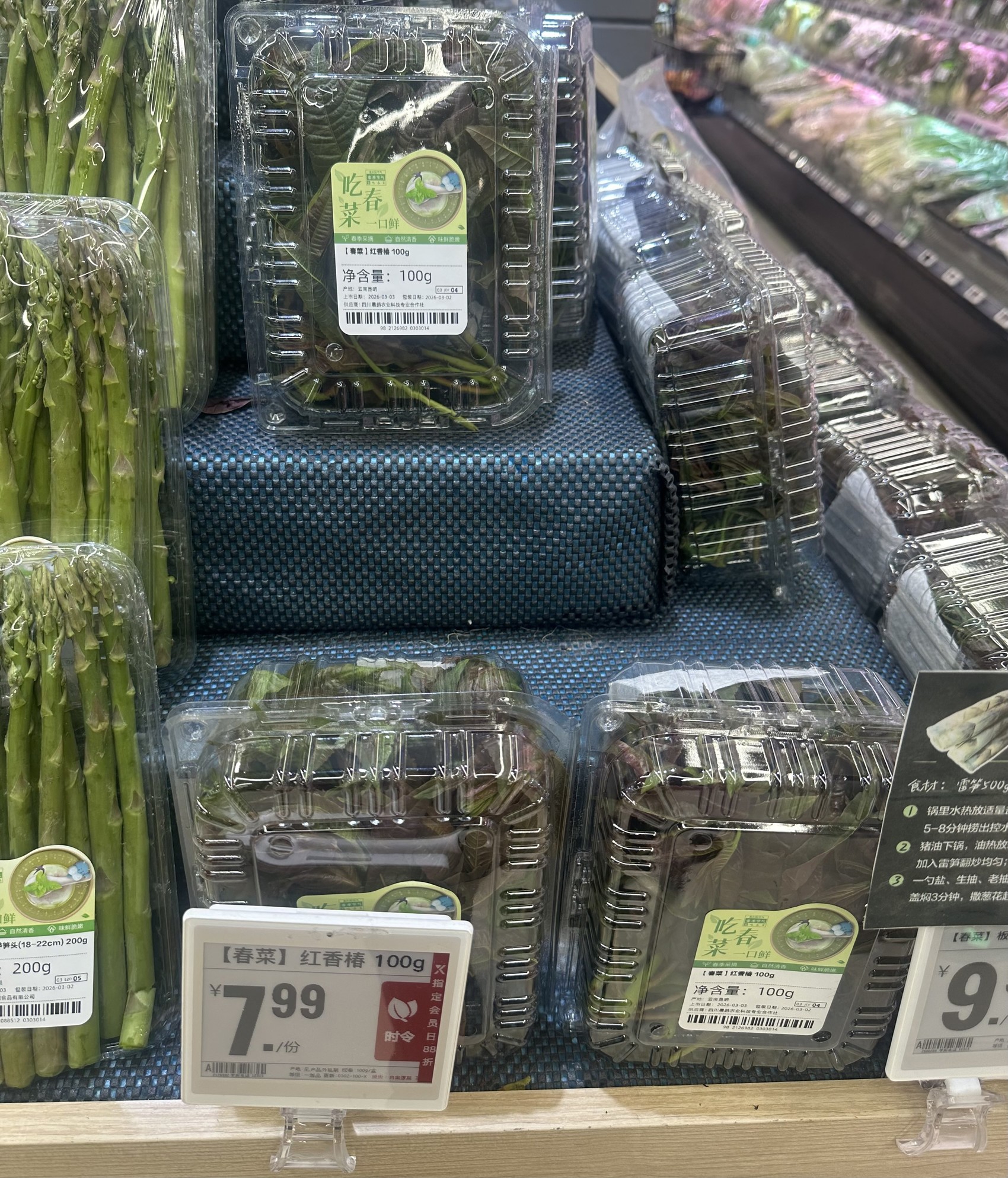 盒马鲜生超市内,摆上的新鲜香椿。