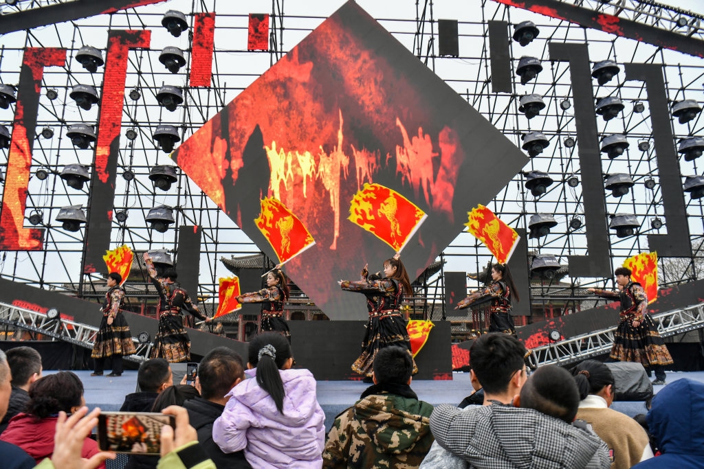 这是3月2日在山西省晋中市榆次老城拍摄的新年演出。