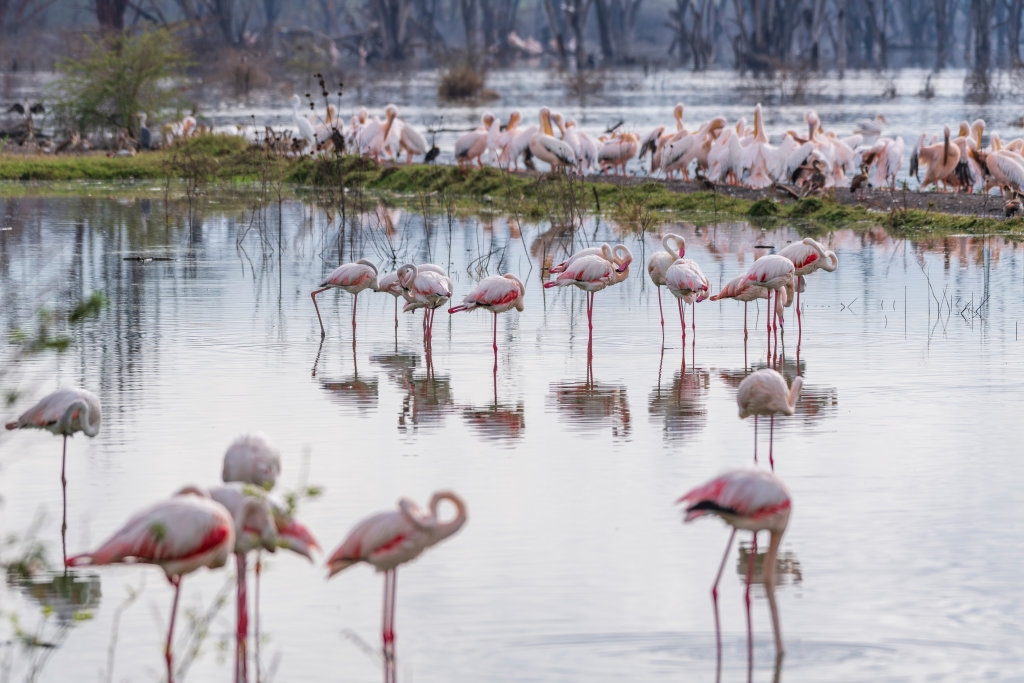 3月2日,群鸟在肯尼亚纳库鲁湖国家公园内栖息。