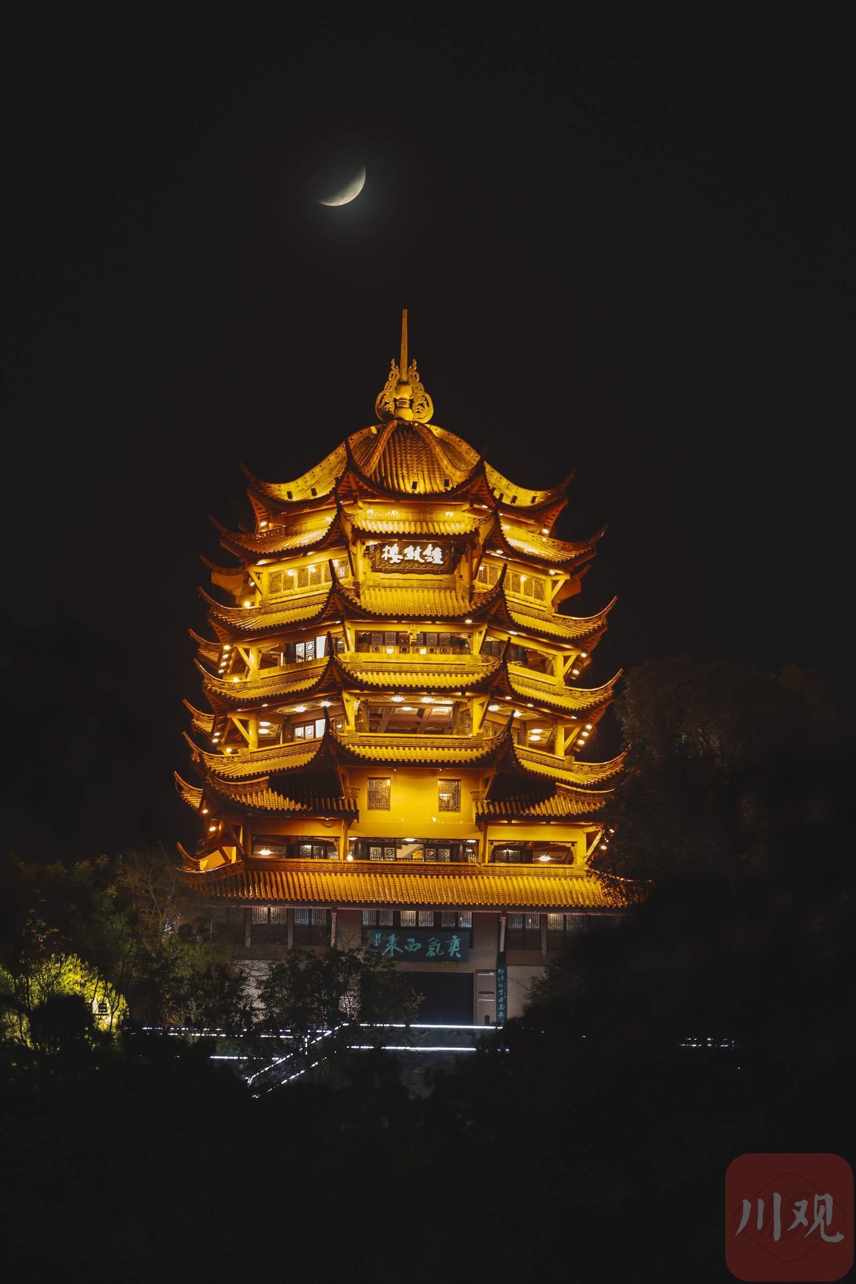 在成都市锦江区,树影与朦胧月影交织成元宵夜的诗。C视觉签约摄影师 沈军