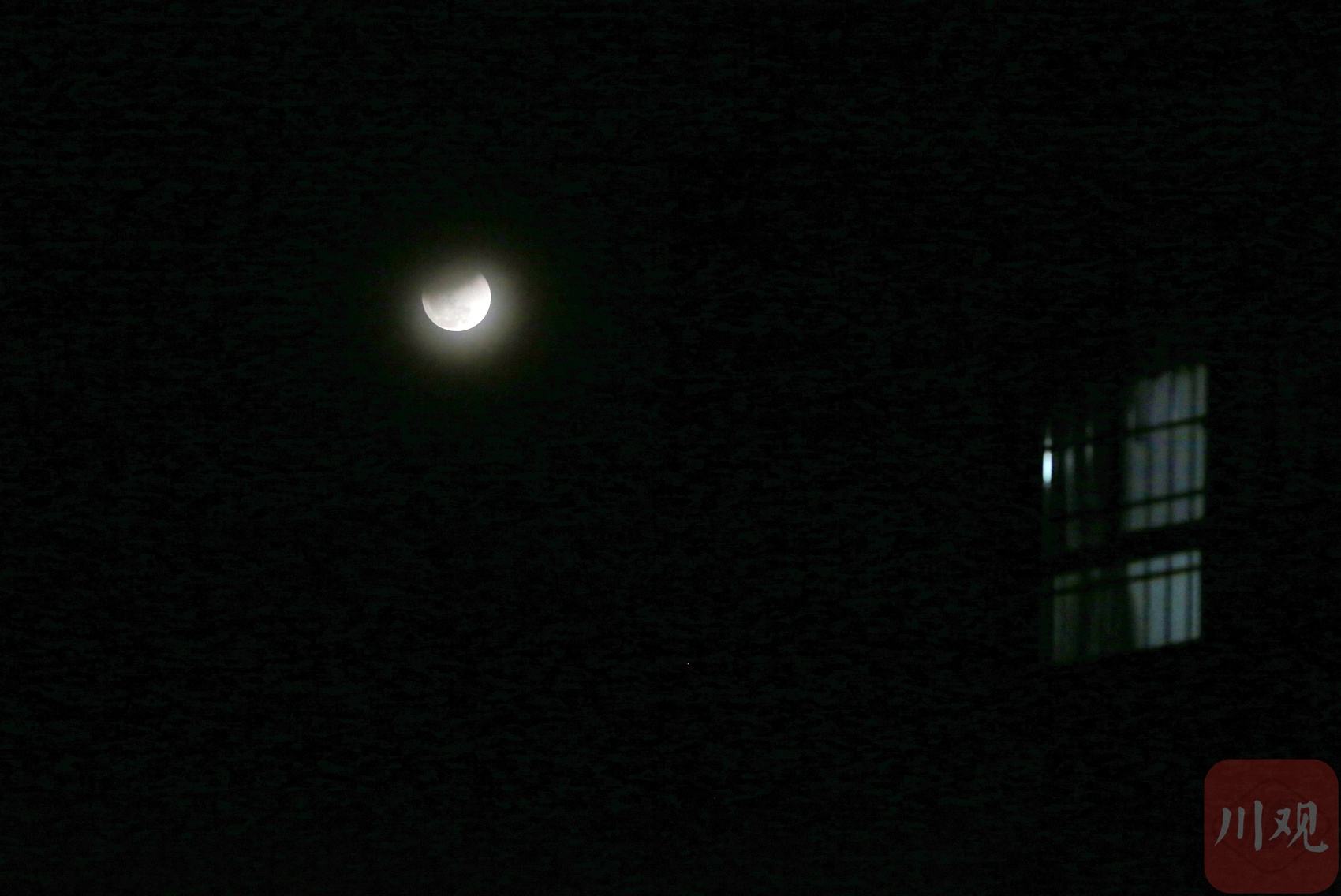 成都金堂城区,月全食生光复圆过程中。C视觉签约摄影师 蒋永平